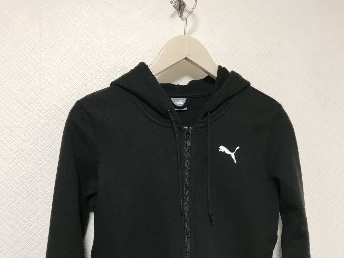商品名:本物プーマPUMAプリントコットンスウェット裏起毛フルジップ長袖パーカーレディーススウェットサーフアメカジワーク黒ブラックM