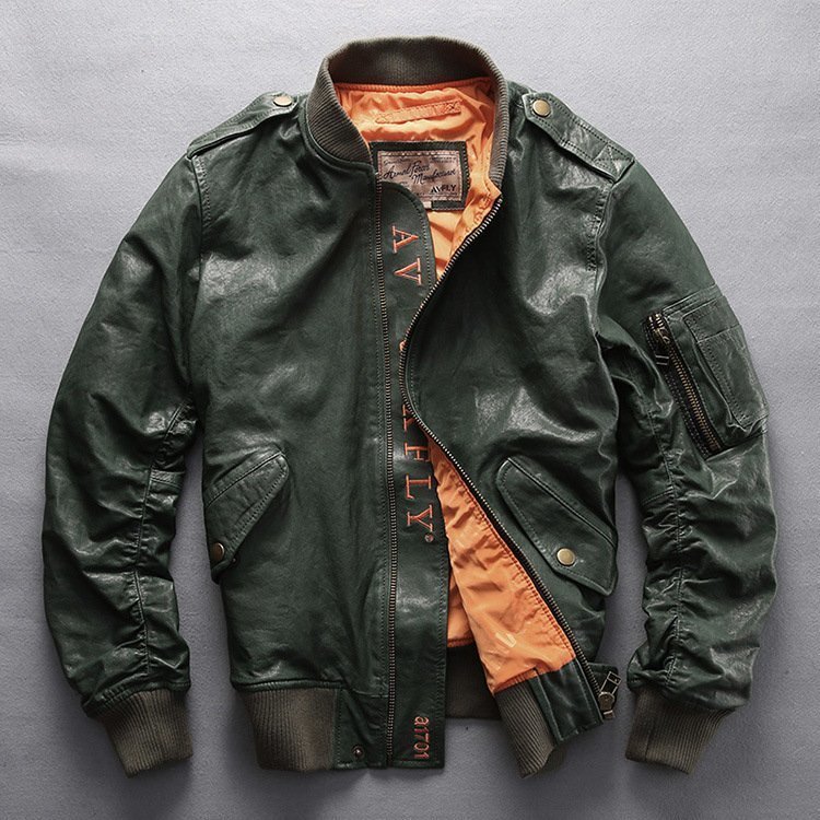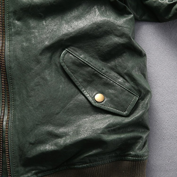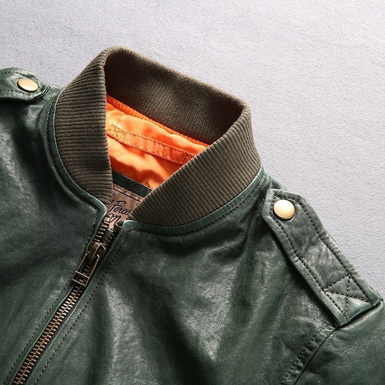 レザージャケット メンズ 刺繍 フライトジャケット 高級 柔らかい羊革 本革 上品 革ジャン 春秋 M~5XL  緑