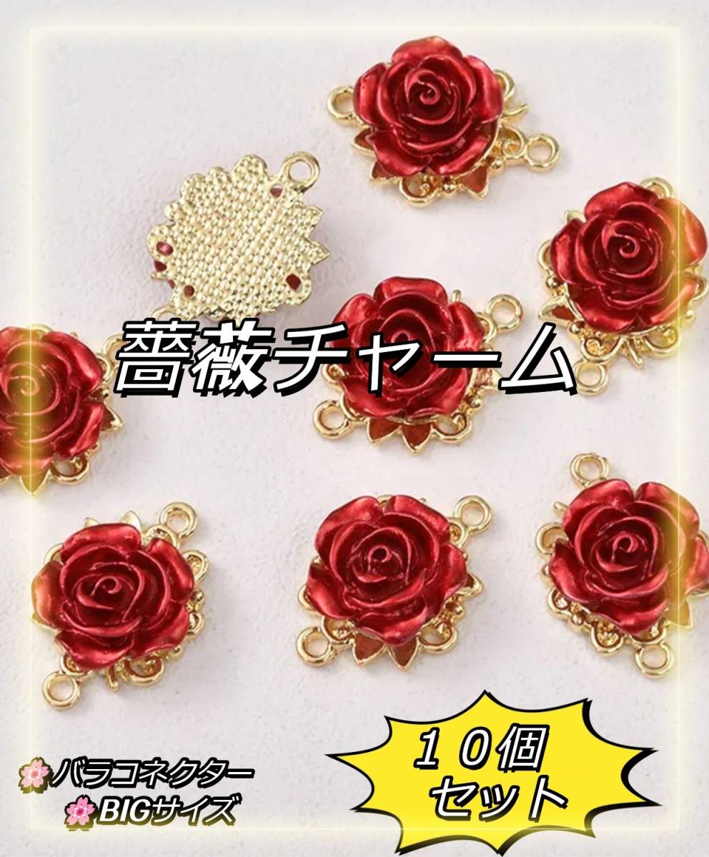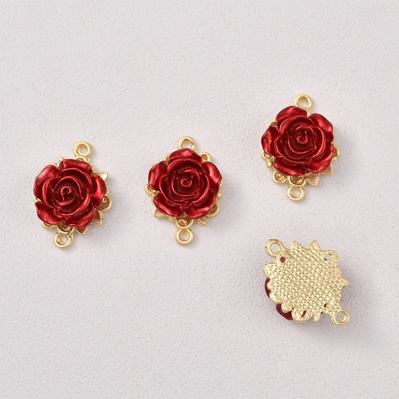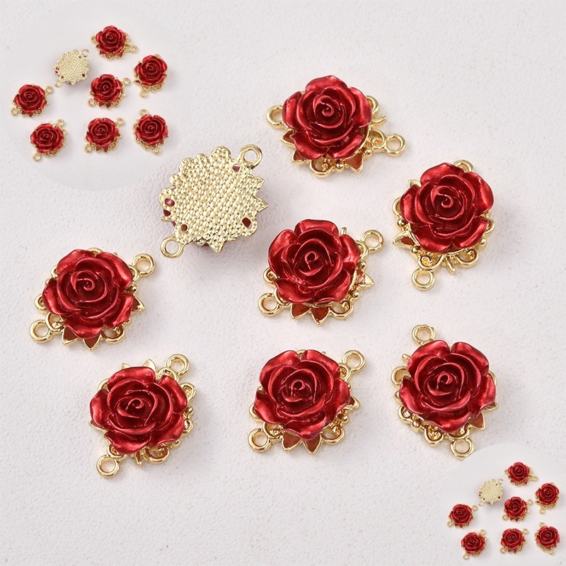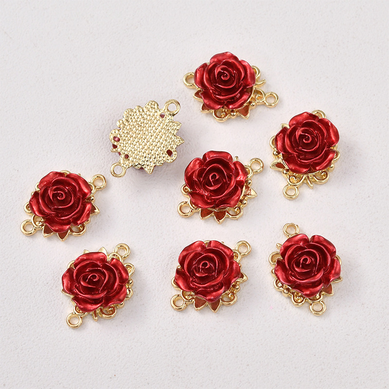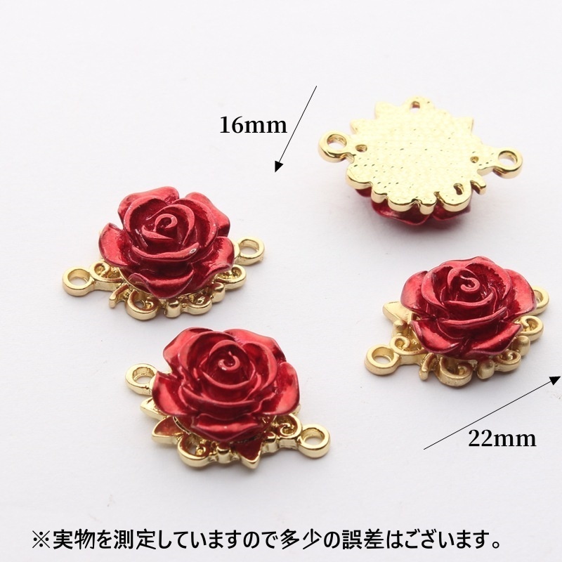 バラのコネクター バラのパーツ10個セット チャーム イラストチャームハンドメイド用 アクセサリーパーツ 22*15mm レッド