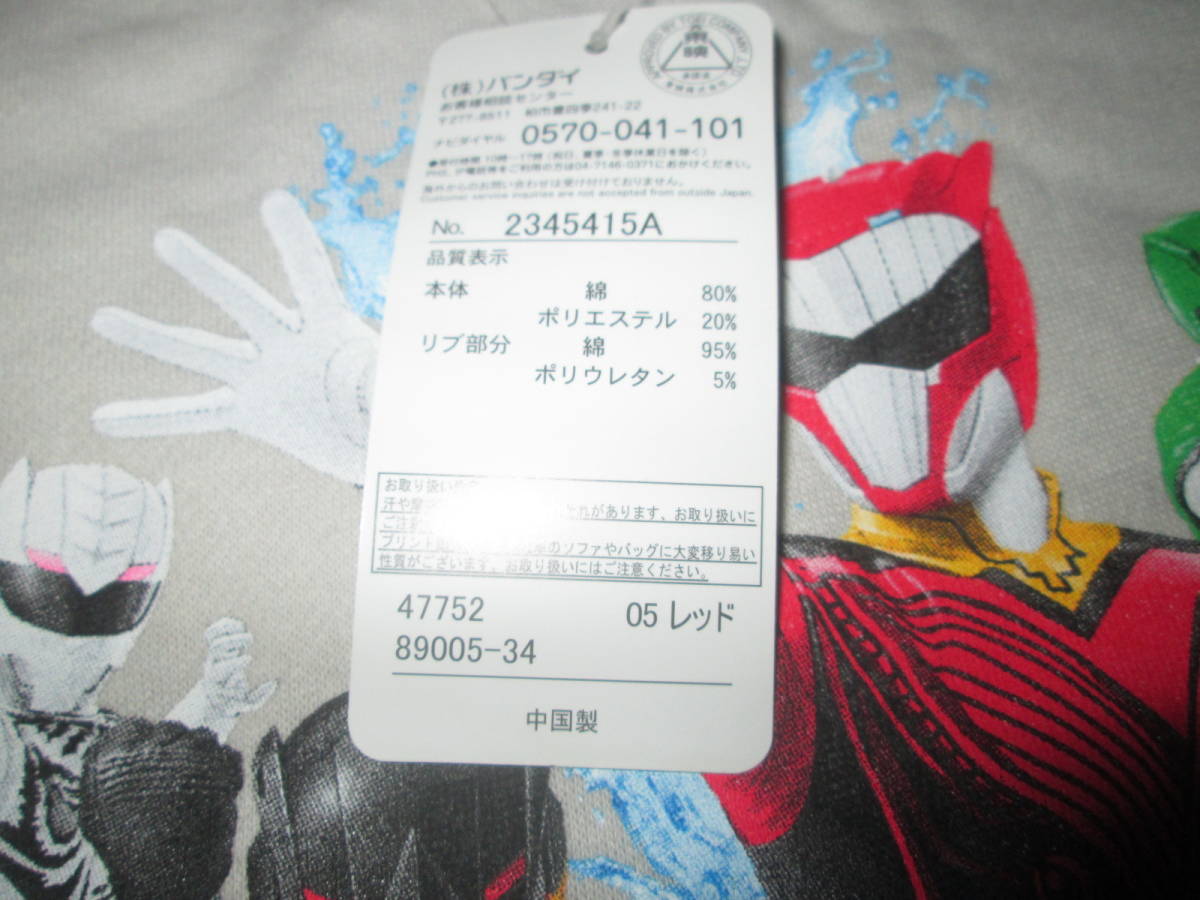 〇。゜〇新品♪動物戦隊ジュウオウジャー 光る長袖裏起毛タイプパジャマ 100cm グレー×赤 〇゜。〇