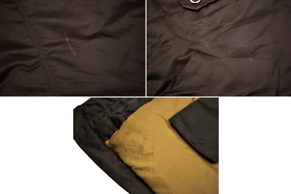 内側の右側に薄っすらとシミ・背中やポケット等にコスレた様な跡が見られますが、シミは内側なので着用時には見えずコスレはそこまで大きくは目立たずまだまだご活躍いただけるかと思います。