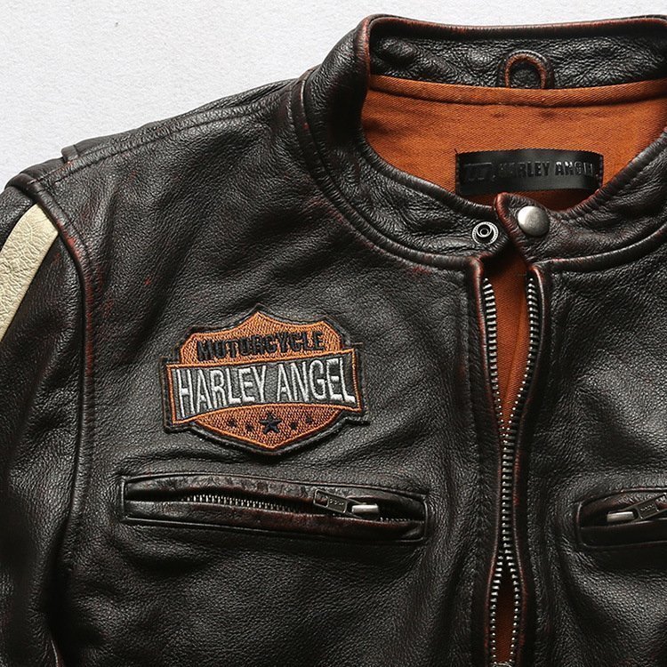 秋冬ライダース 牛革 レザージャケット カウハイド 革ジャン メンズ本革 アメカジ ユーズド加工 サイドライン  M~3XL ブラウン系