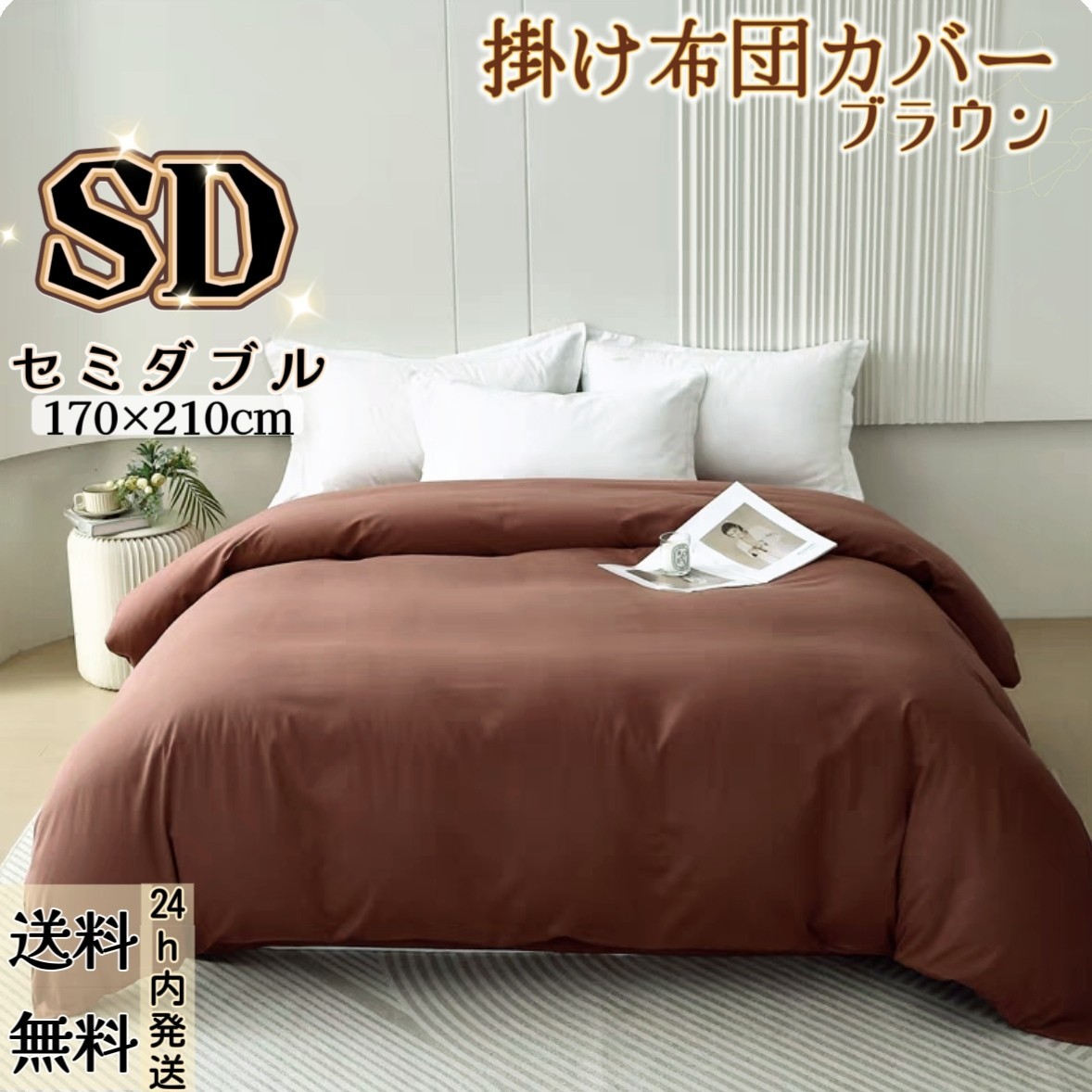 【単品売り】布団カバー 掛け布団カバー ふとんカバー 肌触りの良い 寝具カバー 洋式・和式兼用 四季兼用 通気 速乾 掛ふとんカバー 柔らかい 丸洗い可能(セミダブル・170*210CM ブラウン)