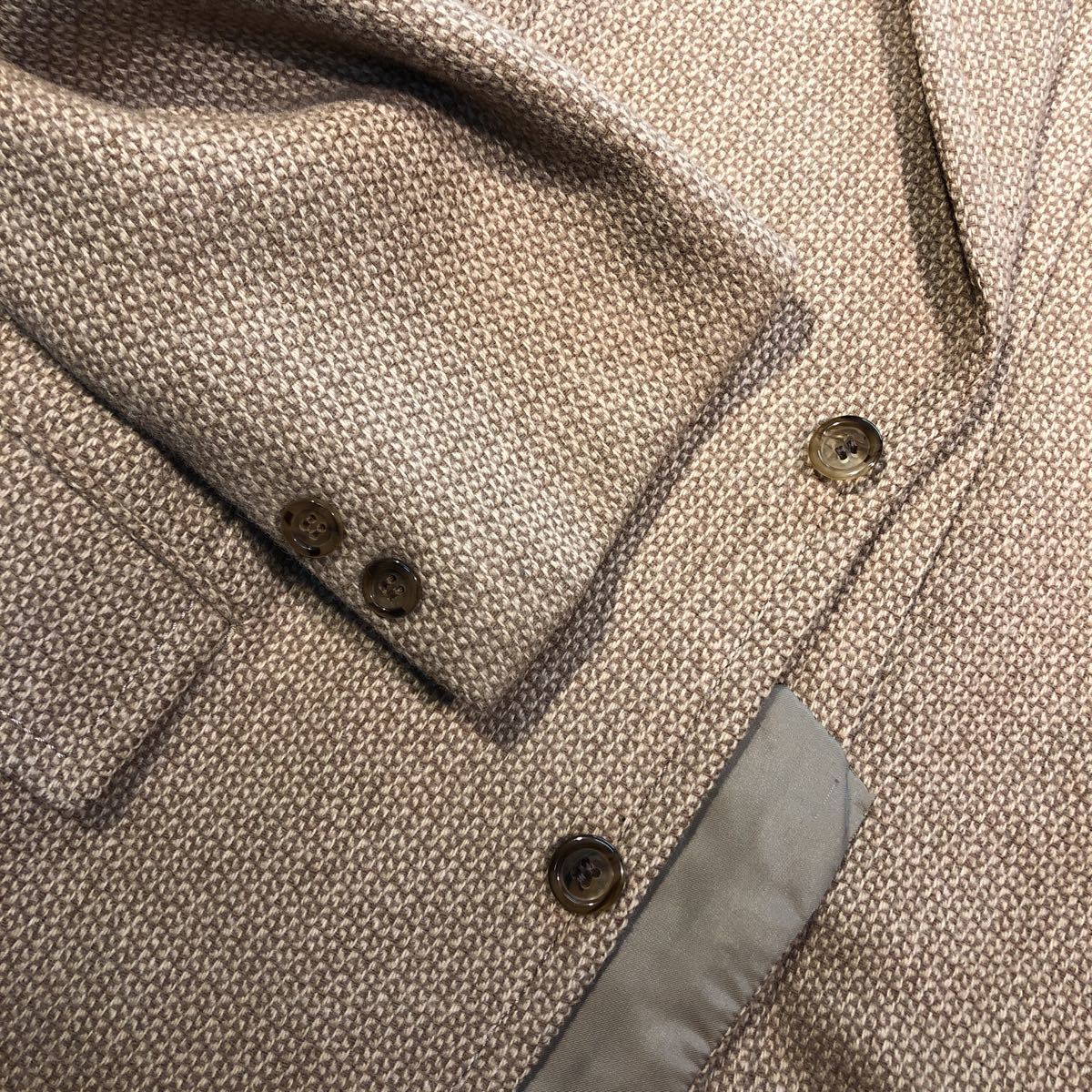 お色はベージュ系。落ち着いたとてもキレイな仕上がりになっています。コーディネートに取り入れるだけでオシャレですよ。また生地が大変丈夫なのも魅力で大事にご着用頂ければ10年は愛用出来ますよ。この機会に是非チェックしてみてください♪