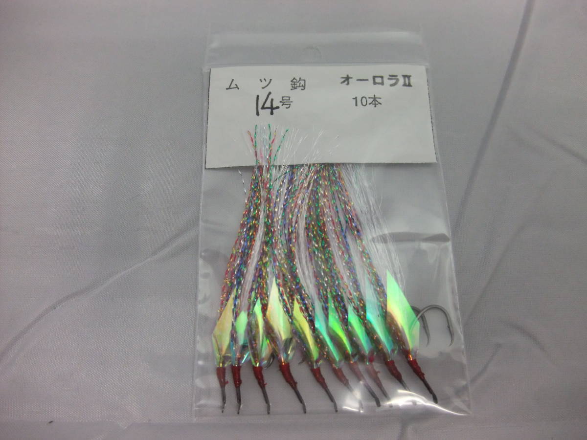 14SO2 ムツ14号 毛針 白フラッシャー オーロラⅡシート付き 10本セット