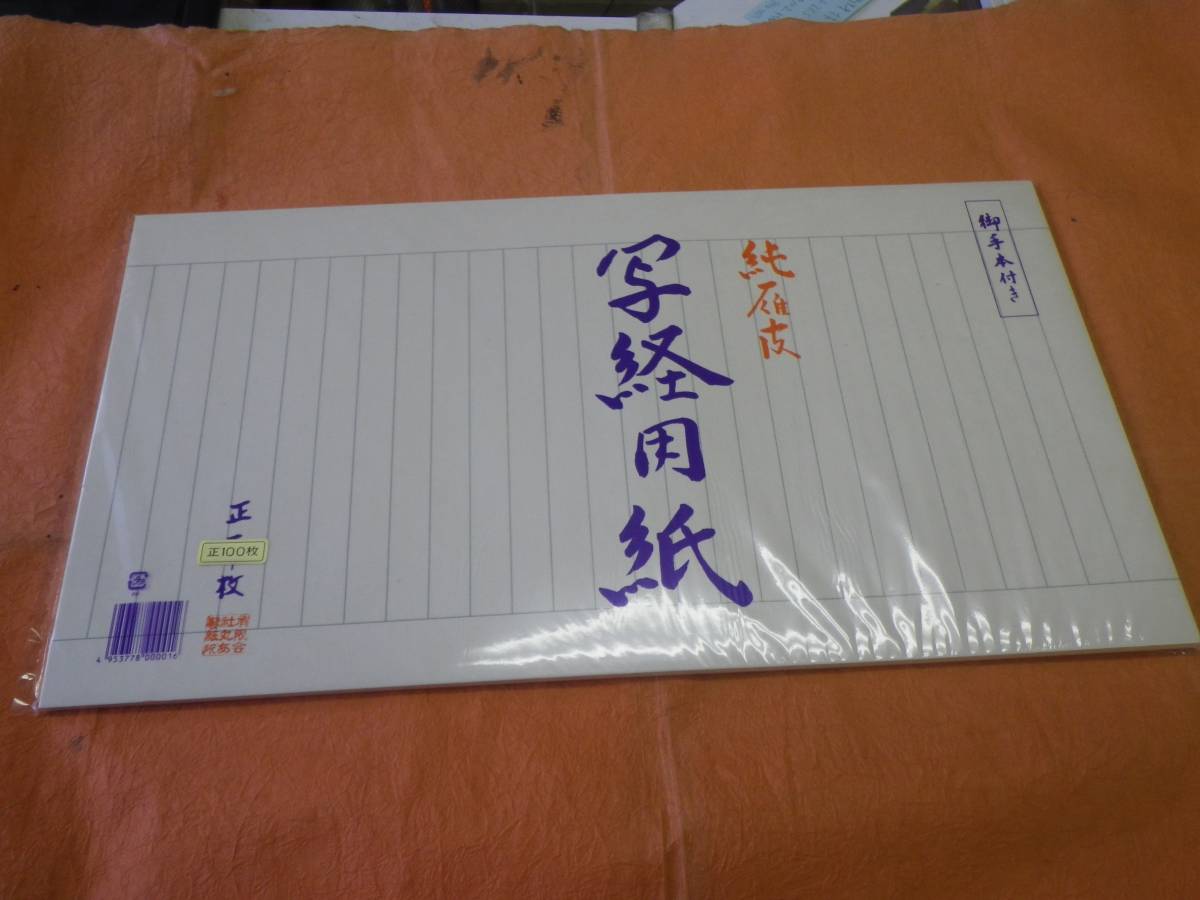 書道専門家向き 写経用紙 純雁皮紙 最高級 100枚 書道専門家向き 写経用紙 純雁皮紙 100枚商品説明雁皮を主原料として漉いた紙で墨色、筆運びが良く品質は最高級です。1袋100枚入(お手本1枚入)定価7700円 <精神修養><こころの癒し><集中力強化><魂のやすらぎ><自己の啓発>慌ただしい日々の中で、知らず知らずのうちに蓄積されていく様々なストレス。現代社会においては、あらゆる人が心の渇きと苛立ちを抱えています。その中で、写経は新たなる癒し効果として注目を集めております。心を無にし、筆を握る。やわらかな和紙の手触りと荘厳な墨の香りが魂を落ち着けてくれます。発送は定形外700円 (ポスト投函の為紛失保証はありません予めご了承ください) この他にも2冊、3冊、5冊セットも出品しておりますので宜しければご覧ください。