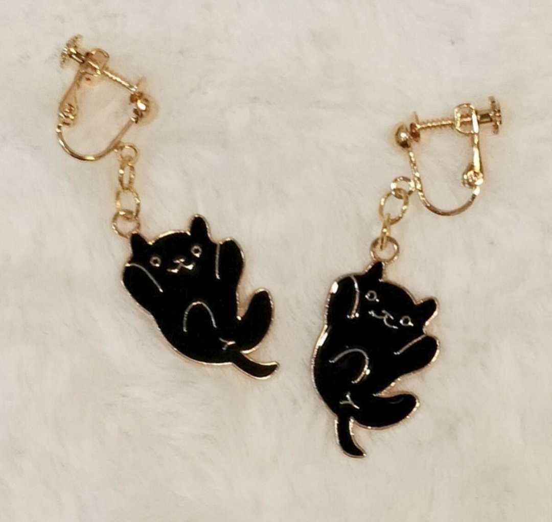 【No.919】ChamiNピアス/イヤリング バンザイにゃんこ ブラック
