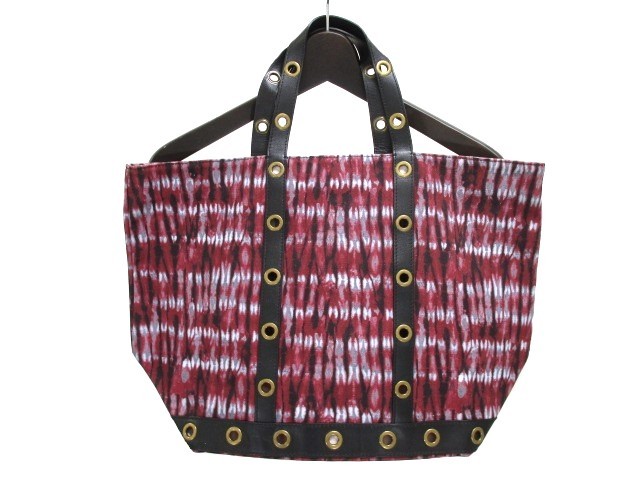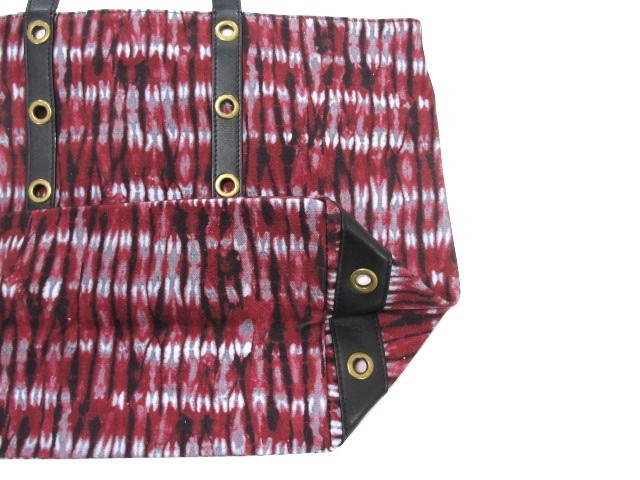 大胆な色使いでムラ感を出してにじませたような面白い生地が目をひき、コーディネートのアクセントに楽しんで頂けるトートバッグです。