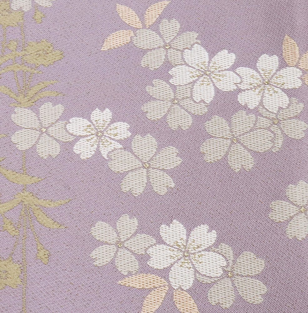| 西陣織袋帯 両面帯 等持院華清 落款入り 紫・金糸通し地 桜 裏地:薄緑・紫・金糸通し地 桜 新品 仕立て上がり |