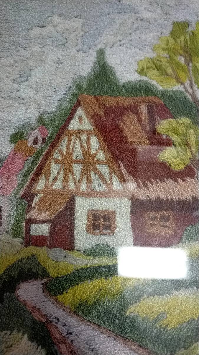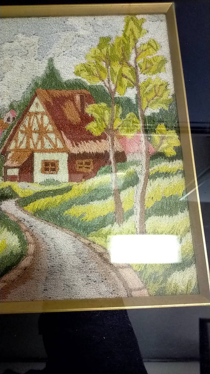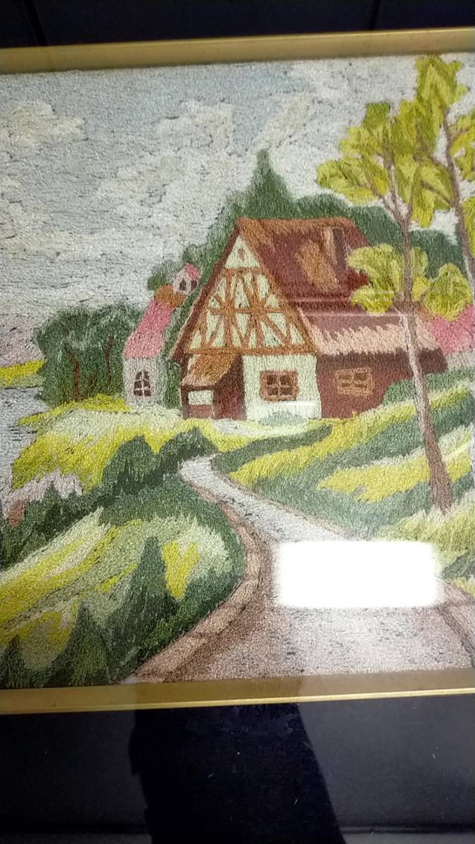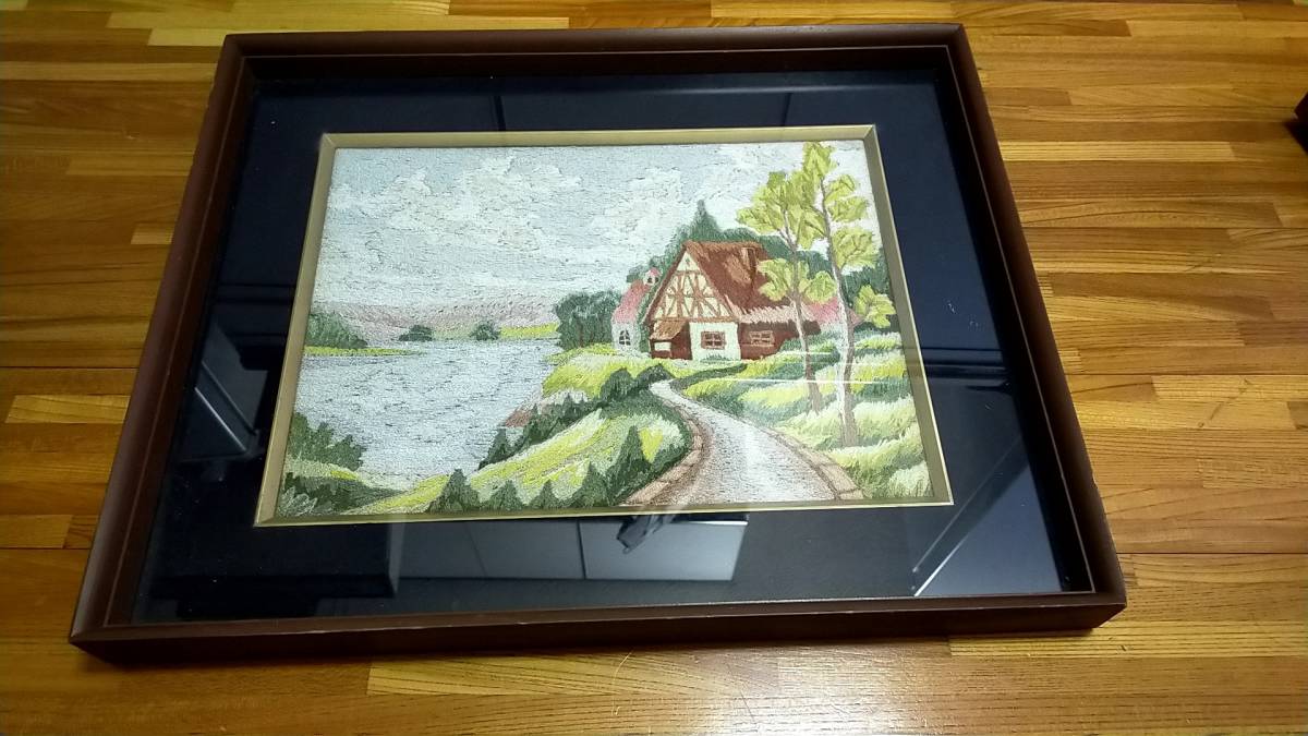 ..kp 刺繍画 46*44cmくらい 風景画 中古 汚れ傷あり