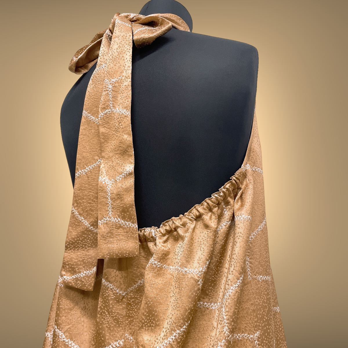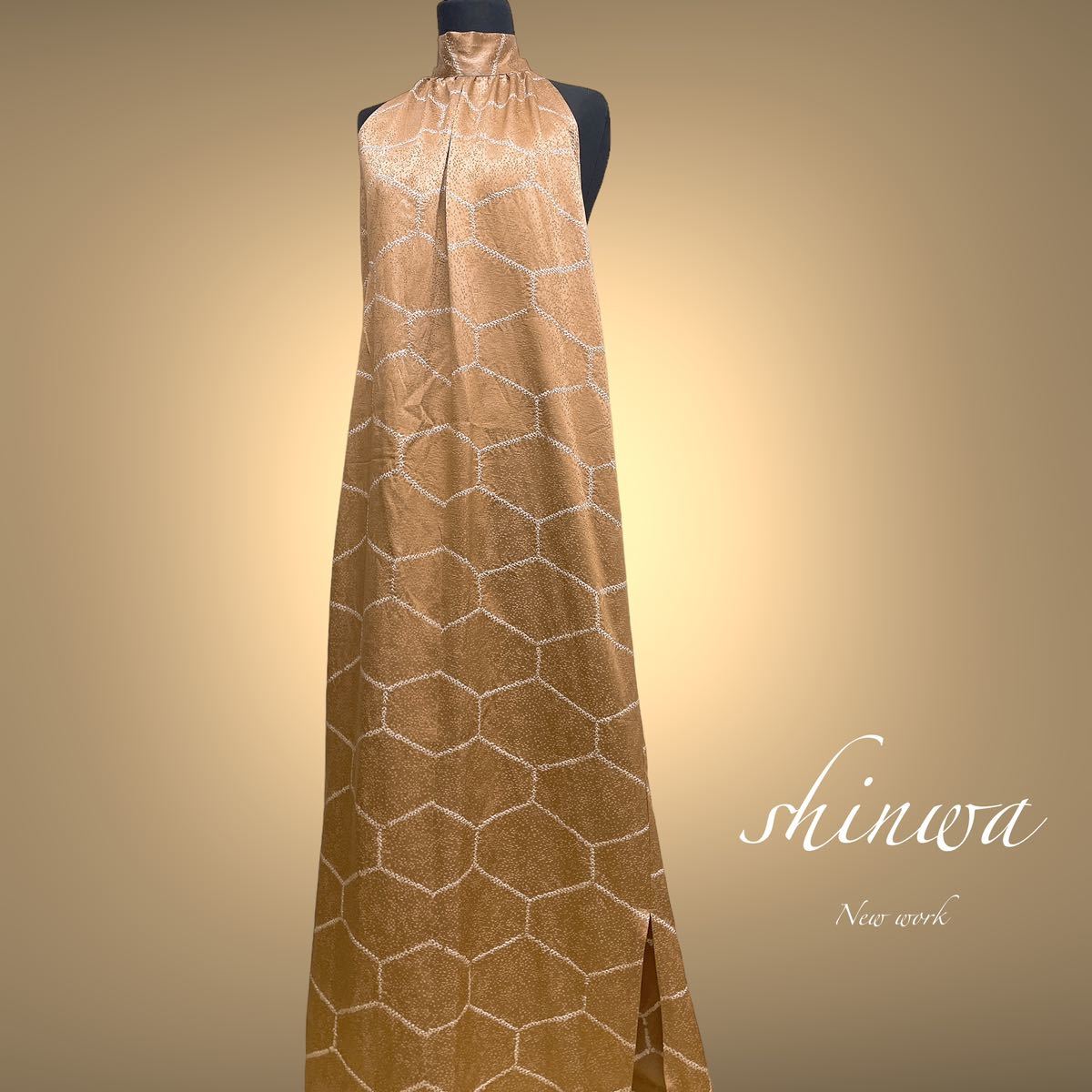 【心和 】正絹 ホルターワンピース 上質 フォーマル 着物リメイク パーティーワンピ 和柄 J51203