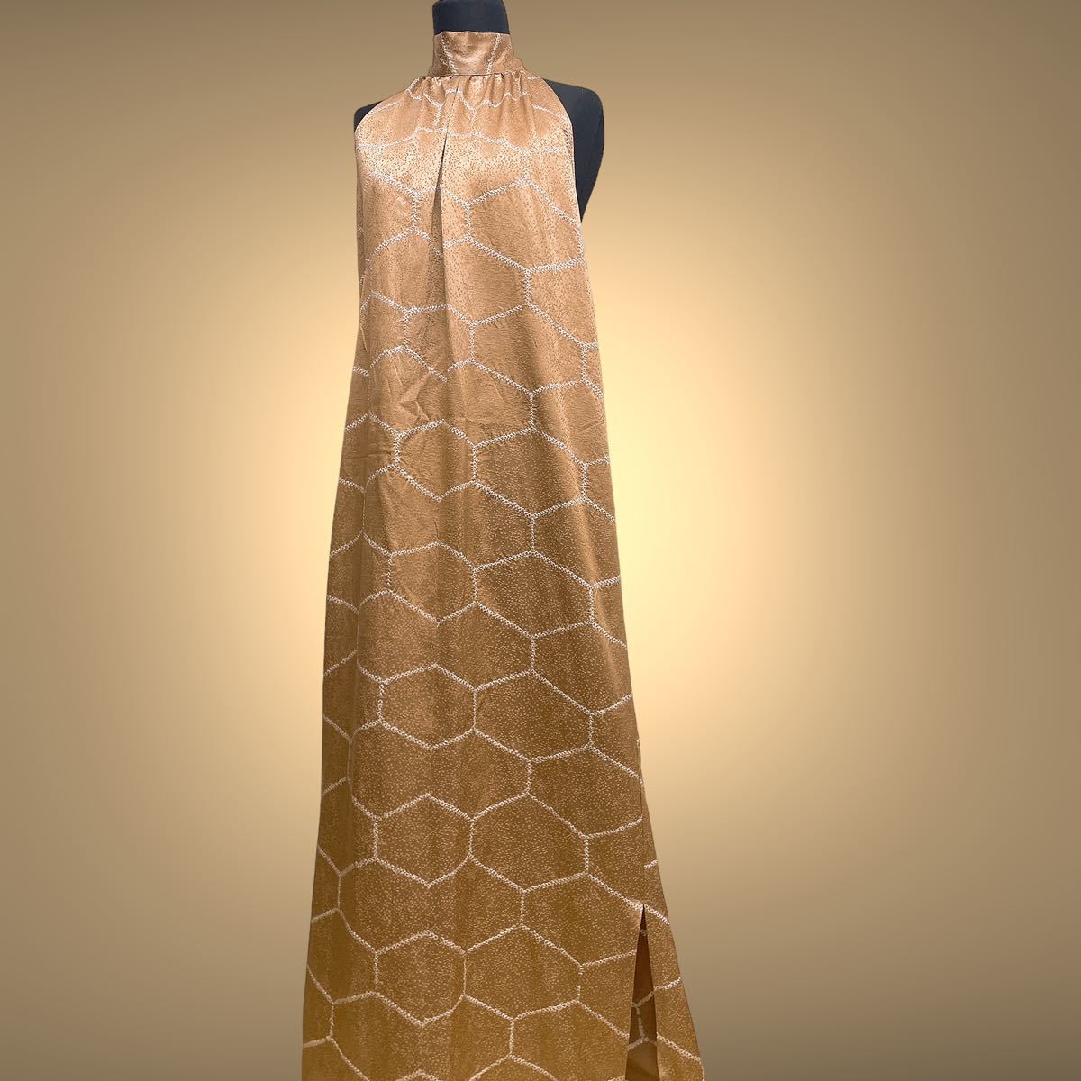 大胆で洗練された魅力を持つ上質素材のホルターネックワンピースになります。