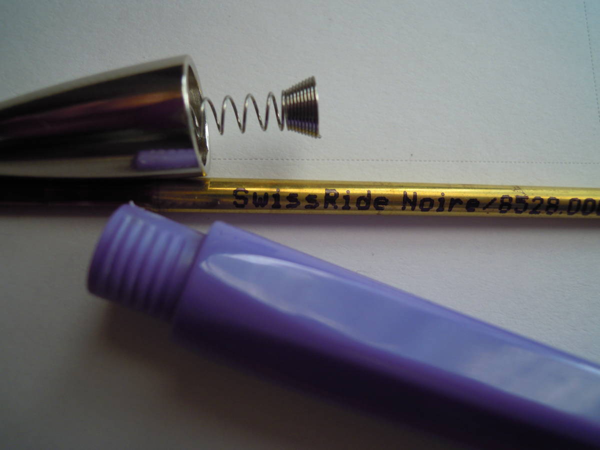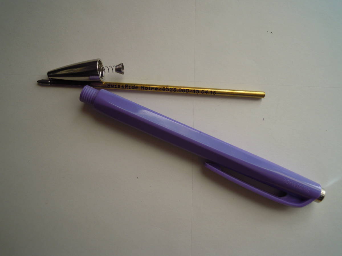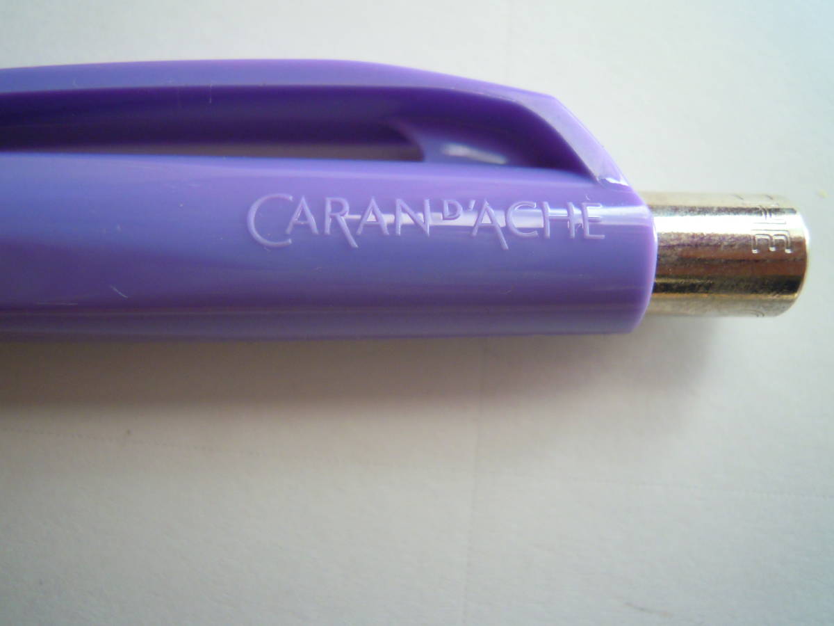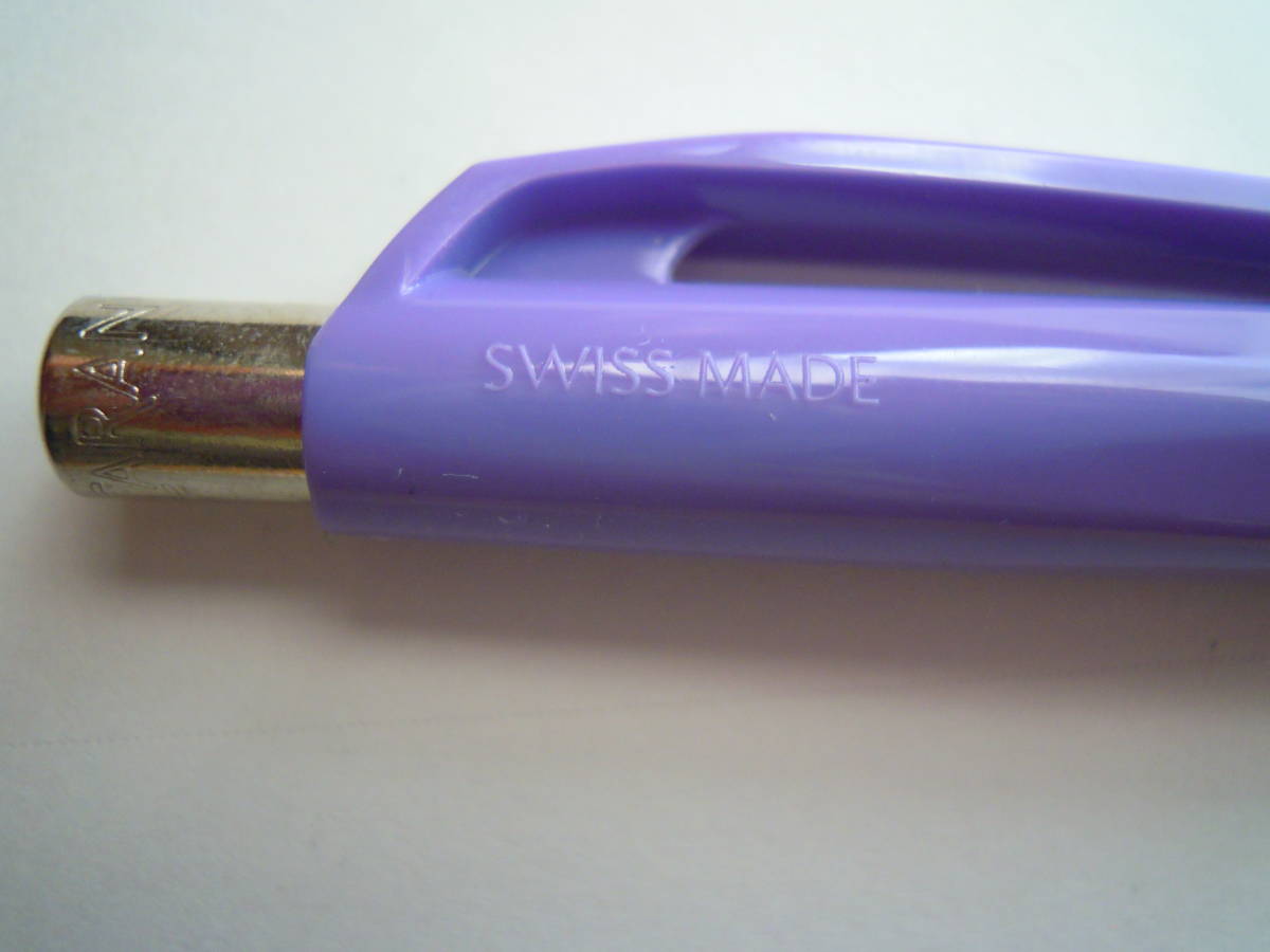 | 軸と天にCARAN D’ACHEと刻印、クリップ脇にSWISS MADEと刻印されています。 |