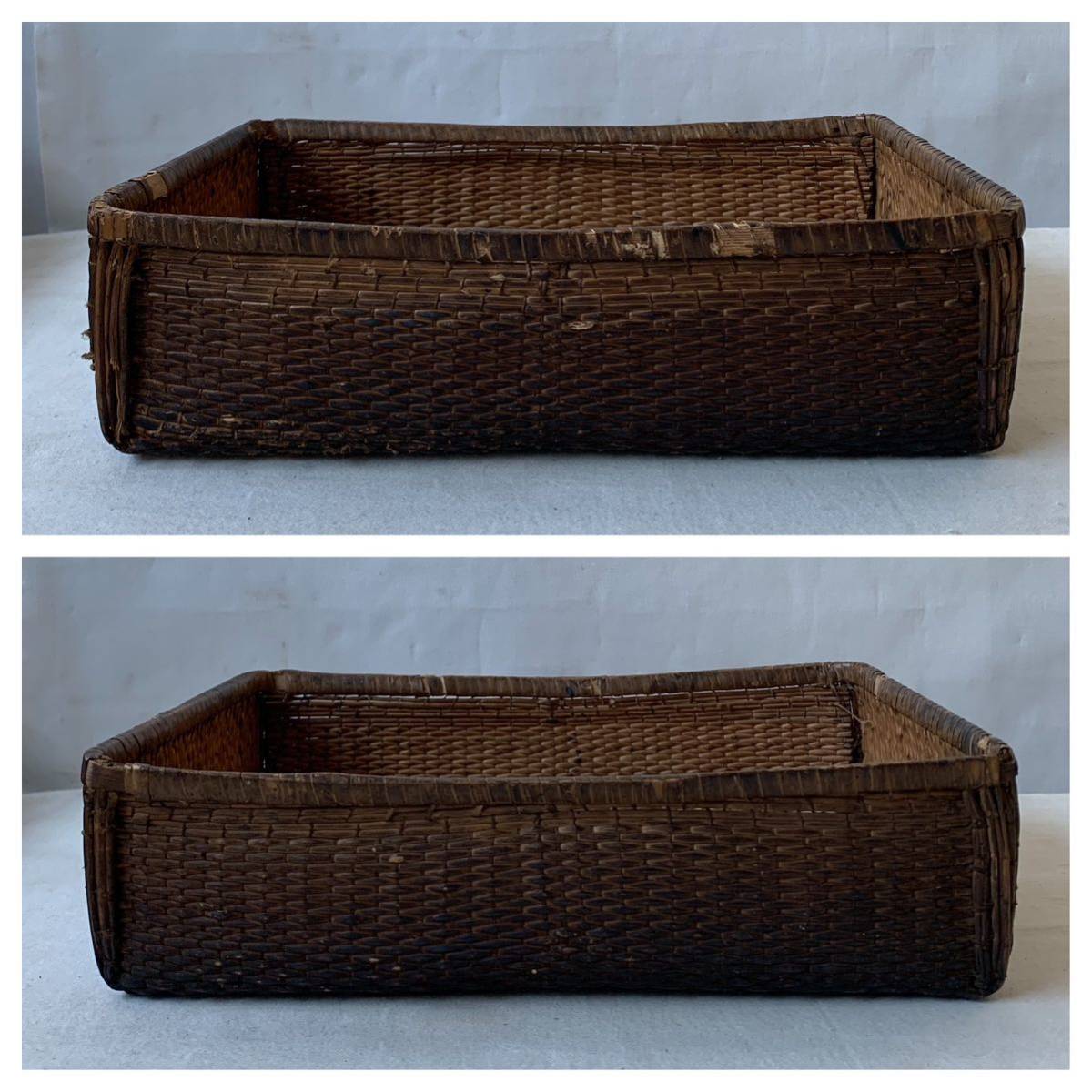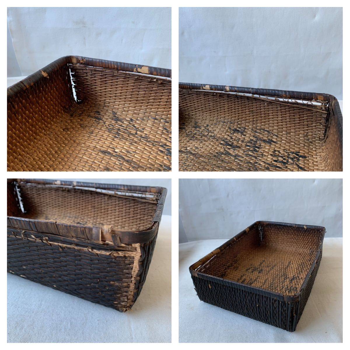 旧家蔵出し品 小振りな古い行李です。経年の雰囲気が良く出ており、お店のインテリアやお店のディスプレイ、イベント出店時の什器などに使って頂くと素敵だと思います。置いて置くだけでも絵になります。