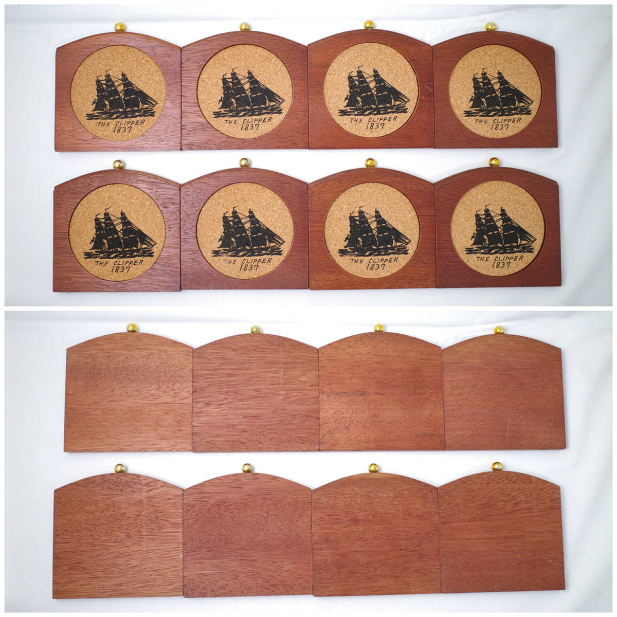 refle【昭和レトロ】 コースター 8枚組 船 the clipper 1837 インテリア ケース付き 引き出し型 コルク製[①]