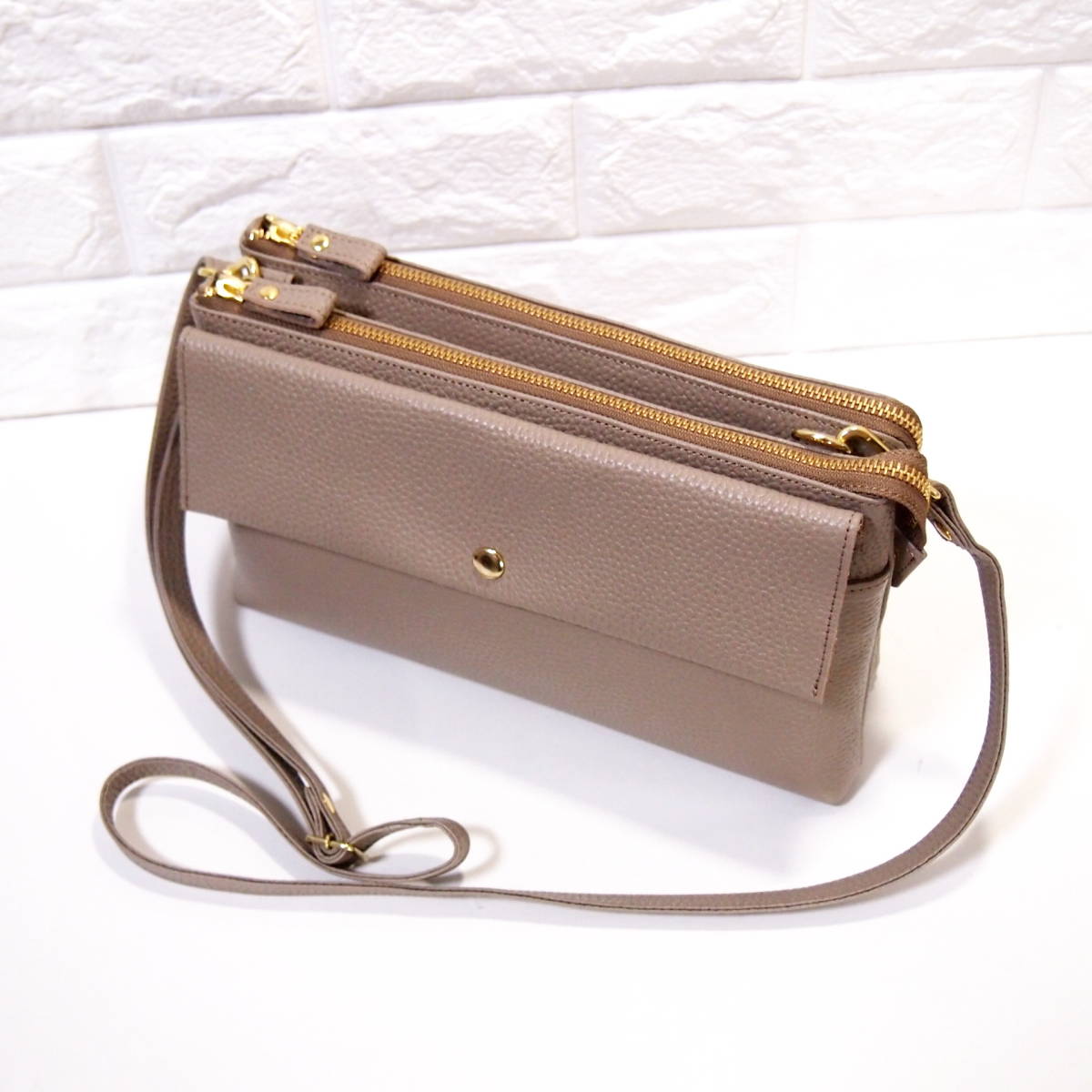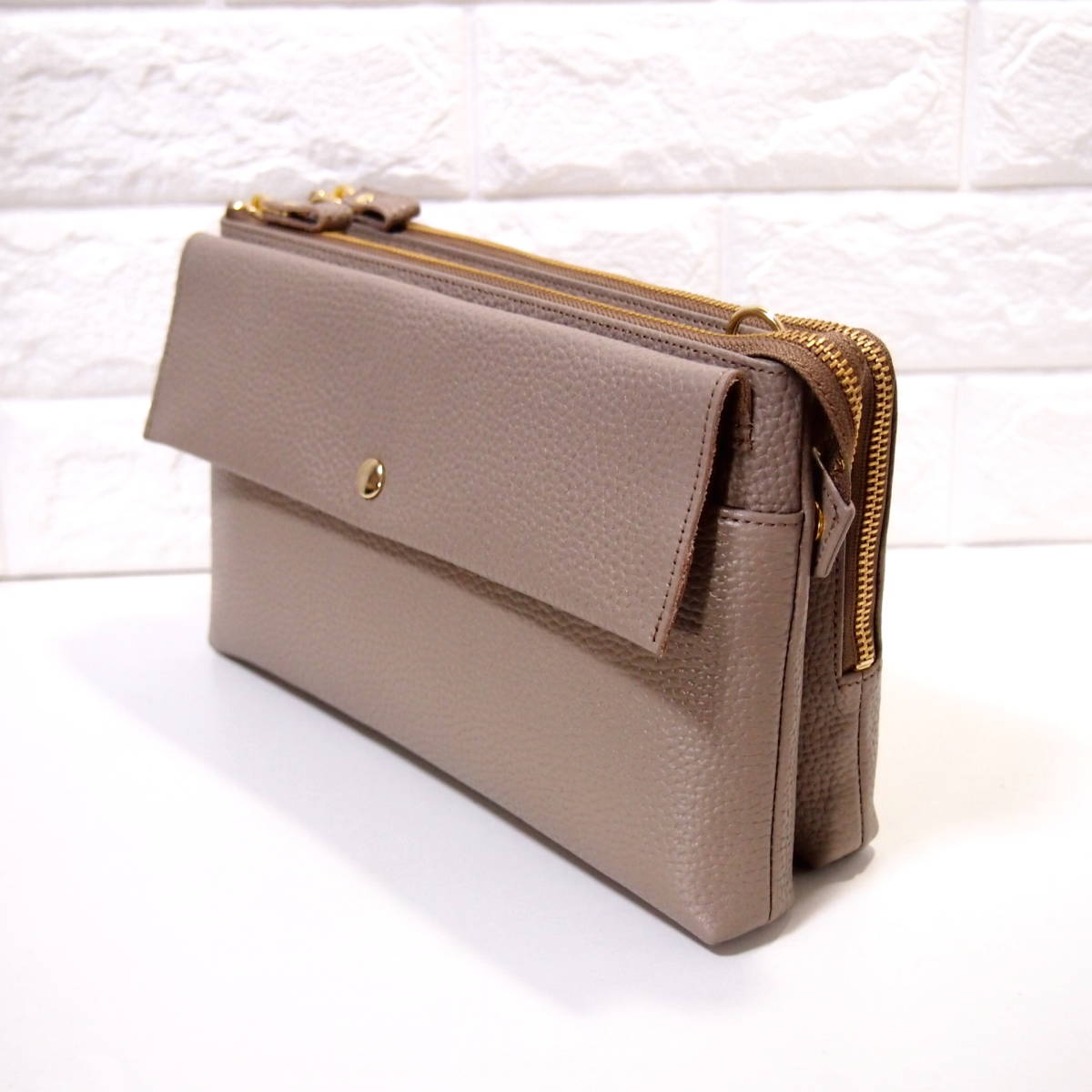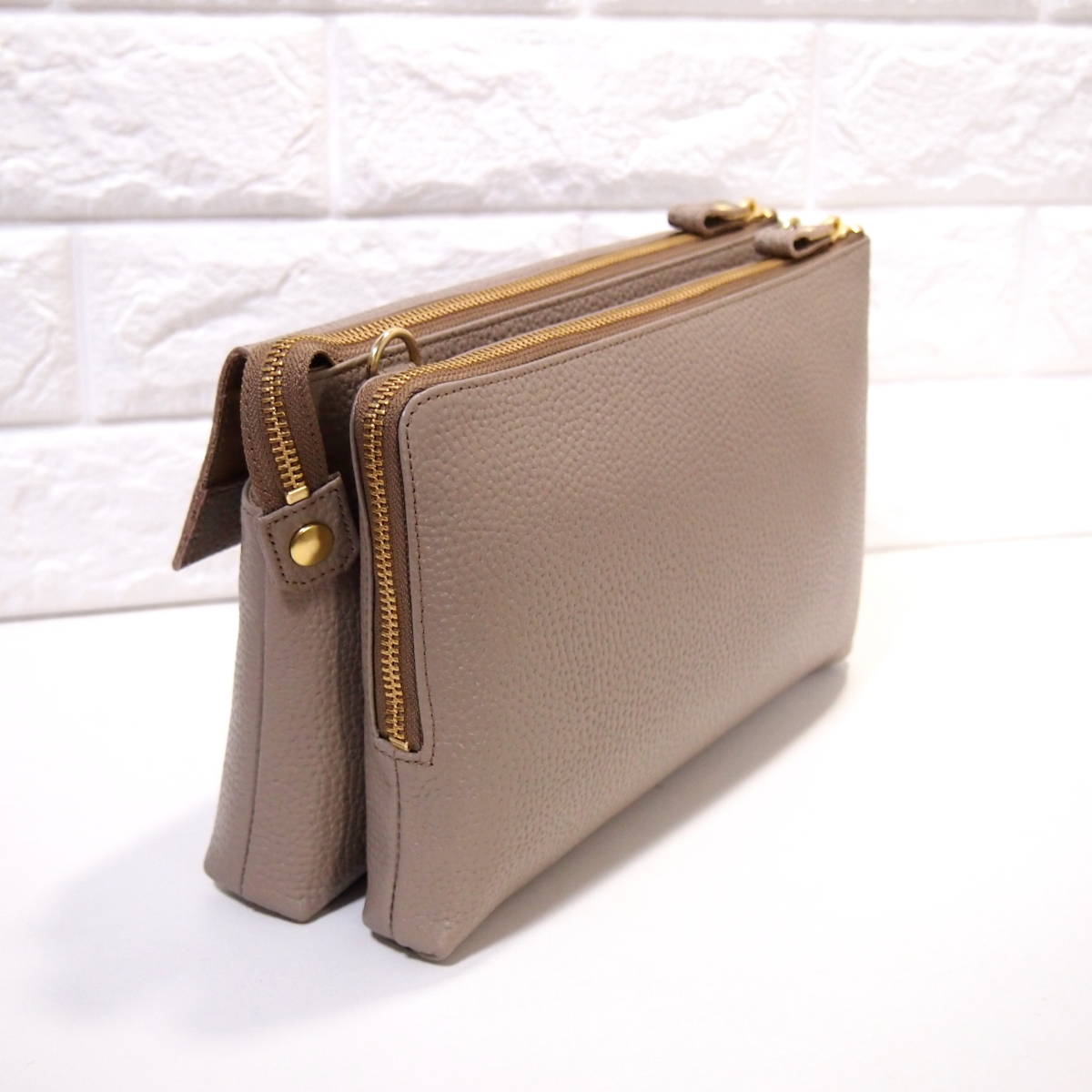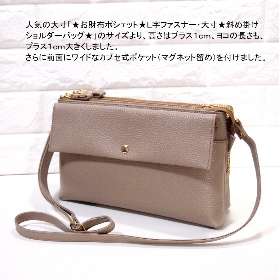 新品★日本製★本革★お財布ポシェット★サコッシュ★L字ファスナー・特大寸★斜め掛けショルダーバッグ★トープ色★前面カブセ・ポケット