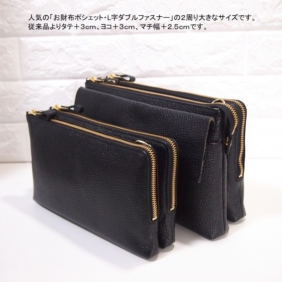 ●人気の「お財布ポシェット・L字ダブルファスナー」シリーズより、2周り大きなサイズ(従来品よりタテ+3cm、ヨコ+3cm、マチ幅+2.5cm)です。