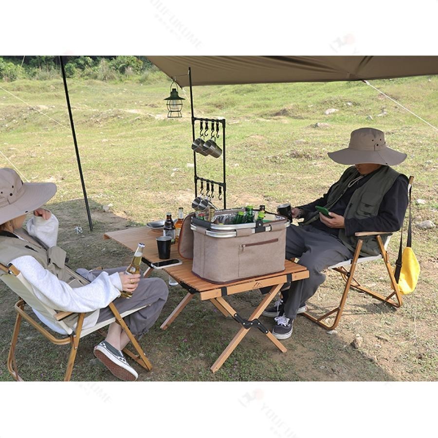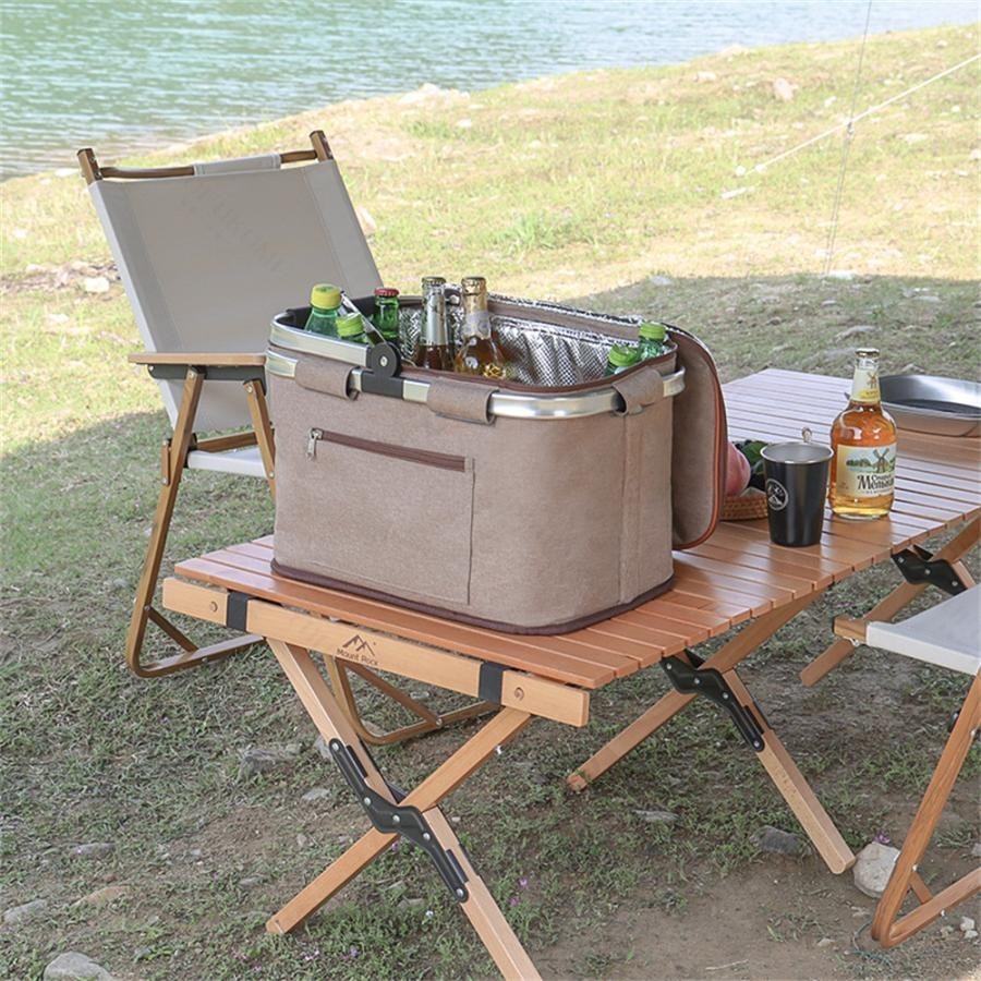 【保温・保冷バスケット/約21L大容量】キャンプサイトで食材なドリンクの保温・保冷ができるマルチバスケット。約21Lの大容量でピクニック。レジャーなどで便利に使えます。使用後はフラットに収納できて、スマートに持ち帰れます。