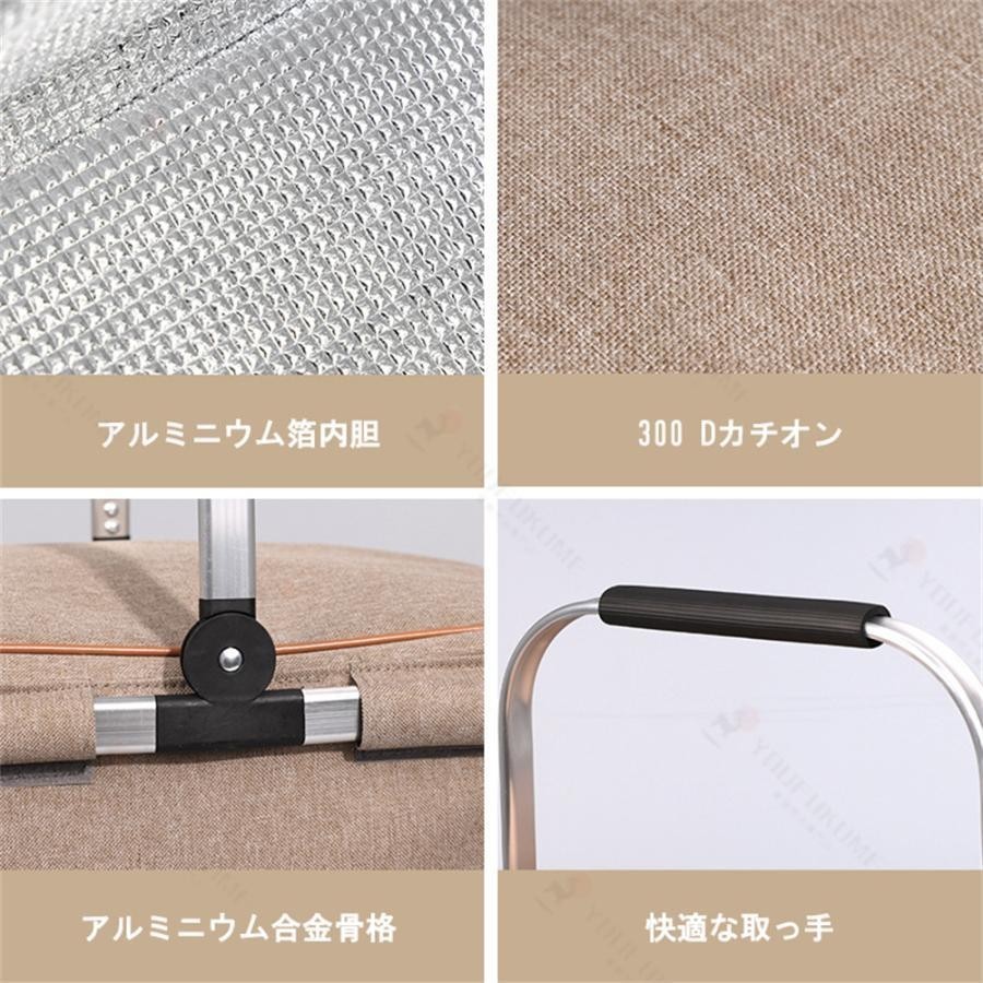 【厚手のアルミホイル素材/防水性能・お手入れ簡単】内部は厚手のアルミホイル素材で断熱性能の高い保温・保冷バスケットです。防水性能も合わせ持ちます。バーベキューでは、食材をしっかり保冷して鮮度を保ちます。水分漏れもありません。お手入れも拭くだけで簡単です。