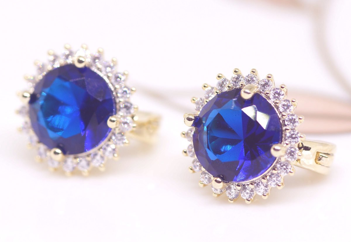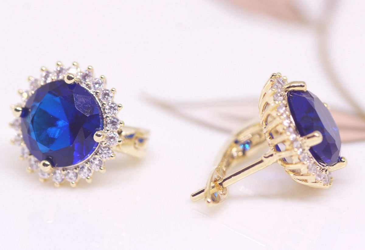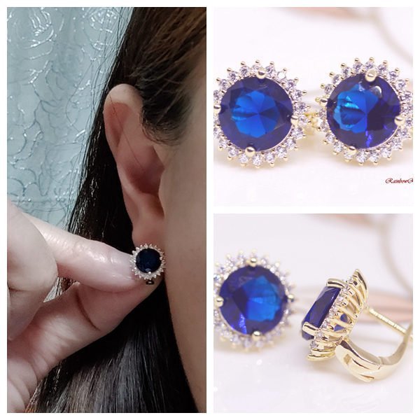 18K RGP ゴールド ダイヤ CZ ブルー フラワー ピアス gp5344
