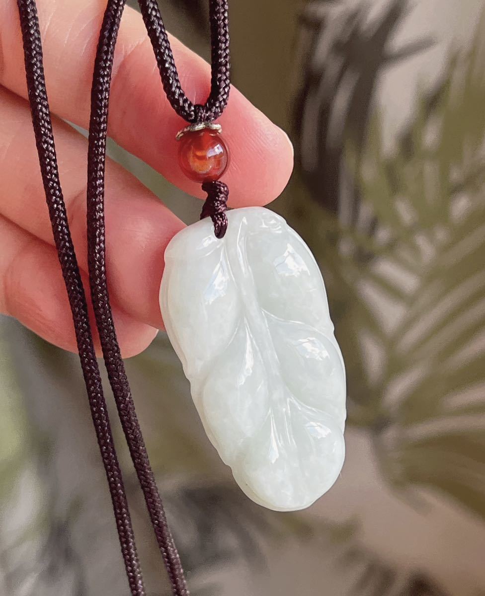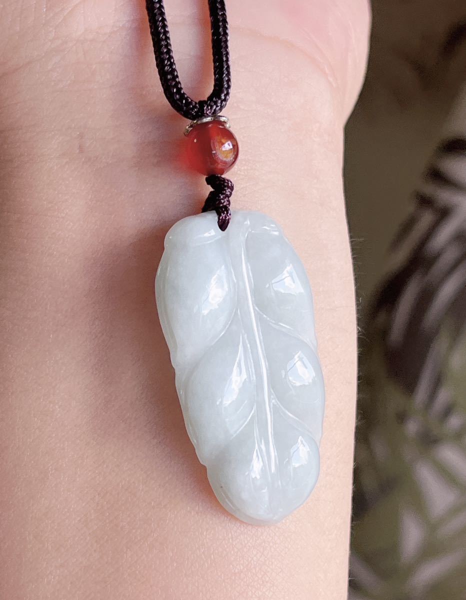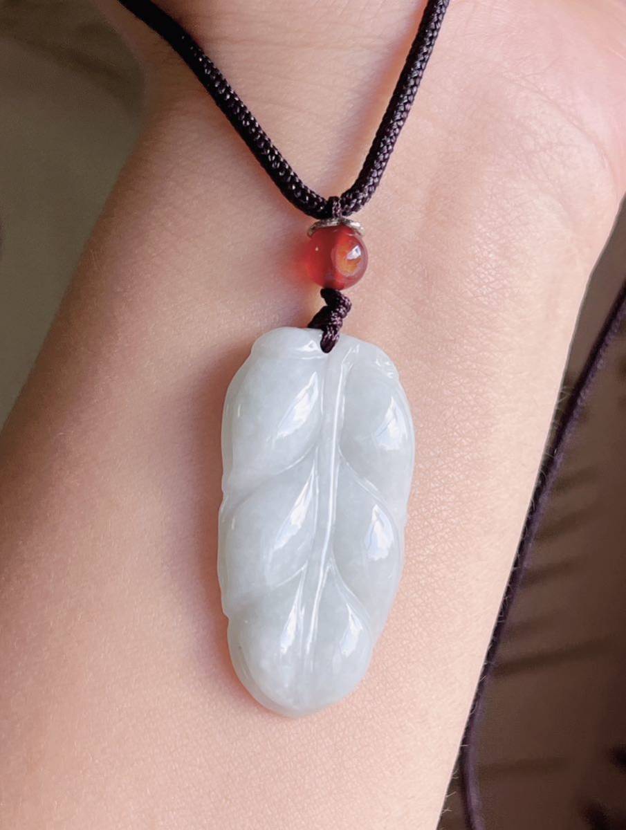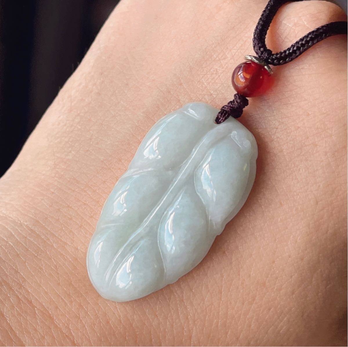 天然ミャンマー翡翠(A)の葉ペンダントサイズ約:20mm*38mm*厚さ5mm;