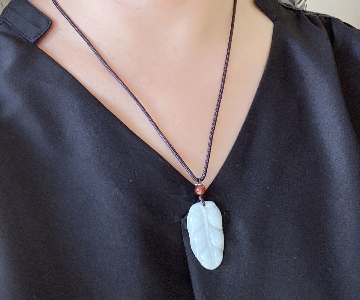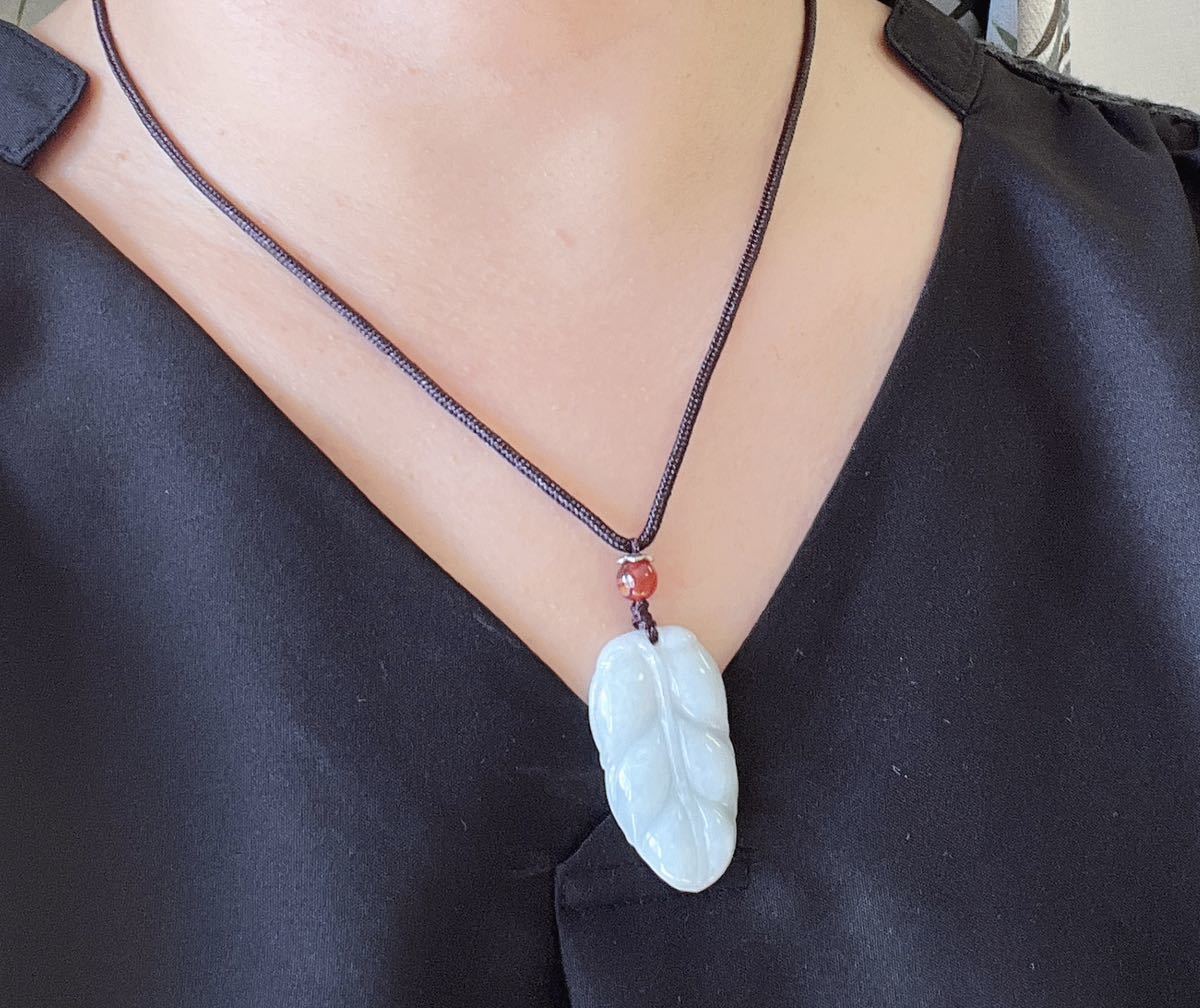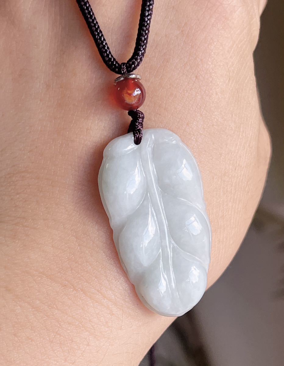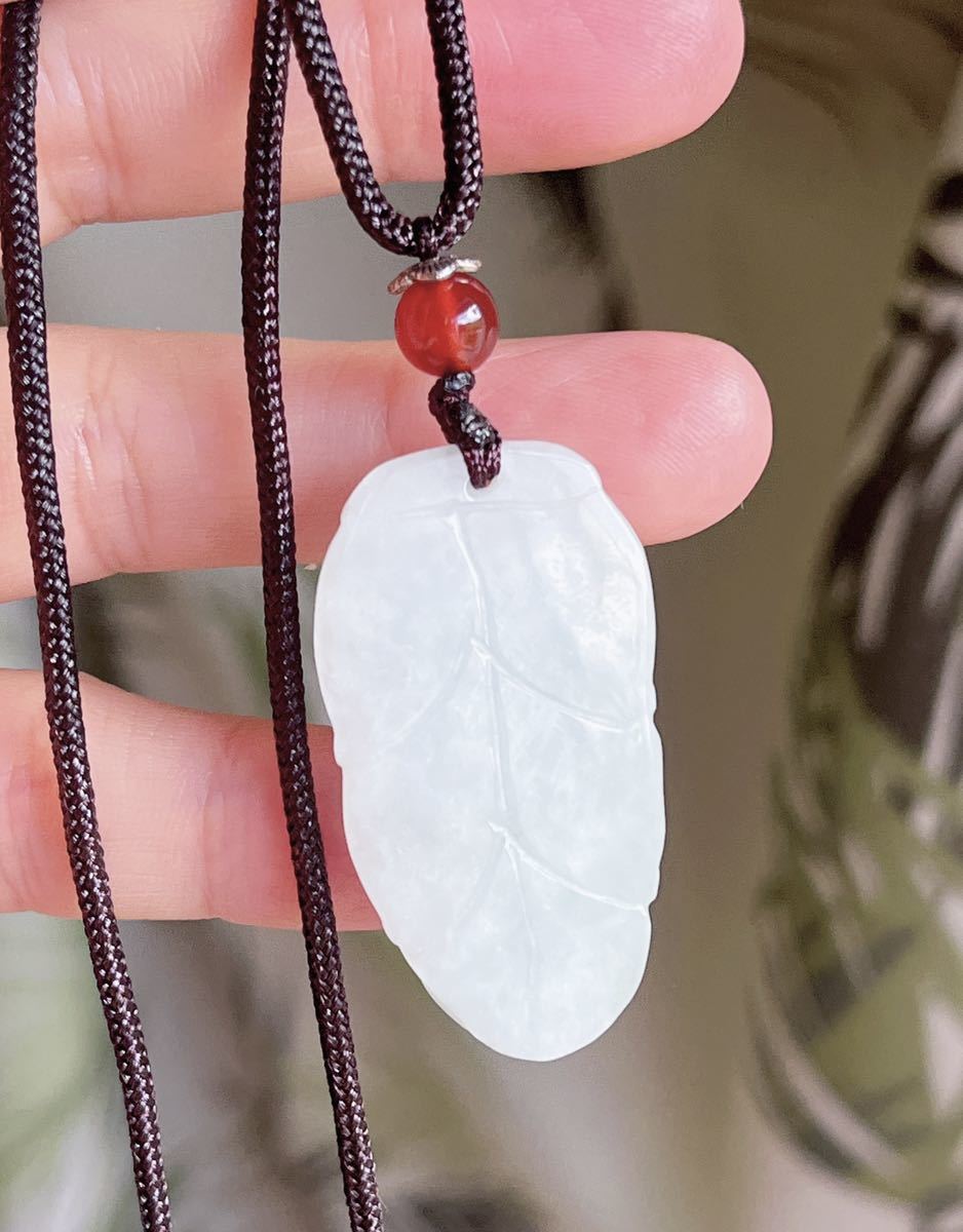 天然ミャンマー翡翠(A)の葉ペンダントサイズ約:20mm*38mm*厚さ5mm;