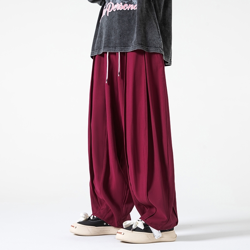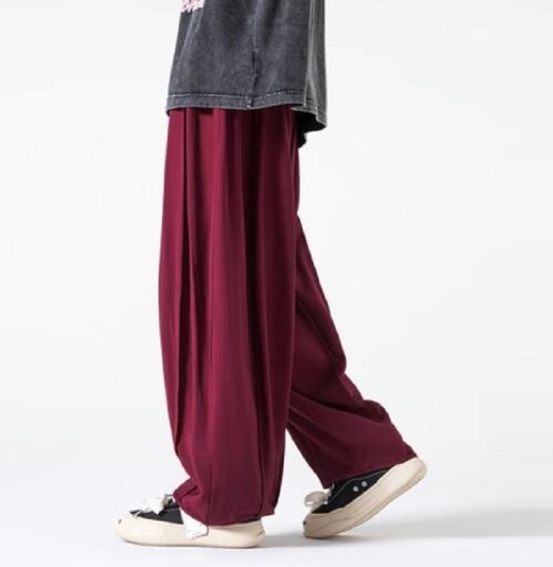 ワイドパンツ メンズ サルエルパンツ 秋 無地 ガウチョパンツ ジョガーパンツ イージーパンツ ゆったり M~5XL  ワインレッド