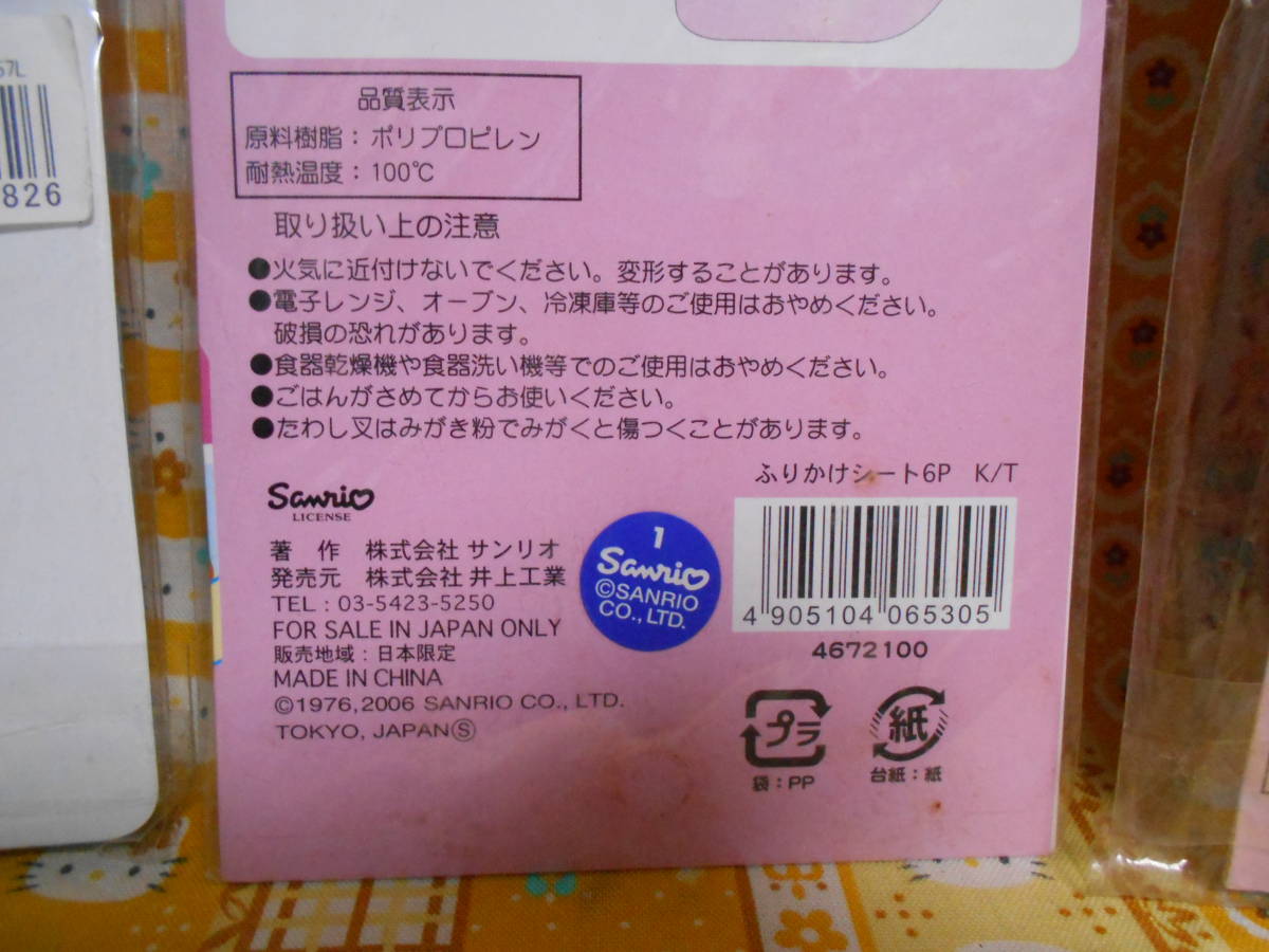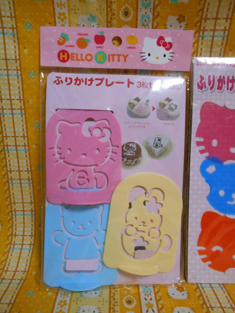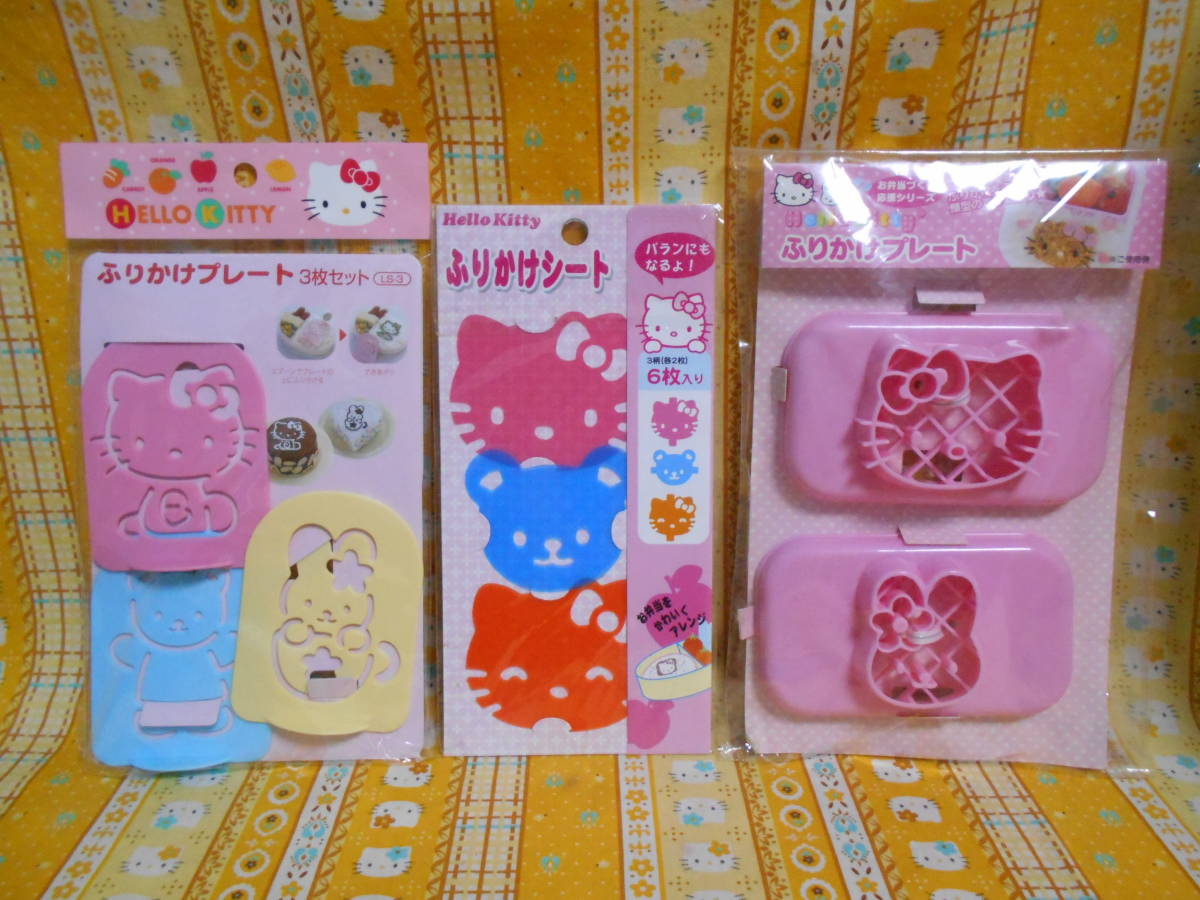 ♪キティ新品サンリオハローキティふりかけプレート2002&ふりかけプレート兼バラン6枚入り2006&ふりかけテンプレート顔型2009
