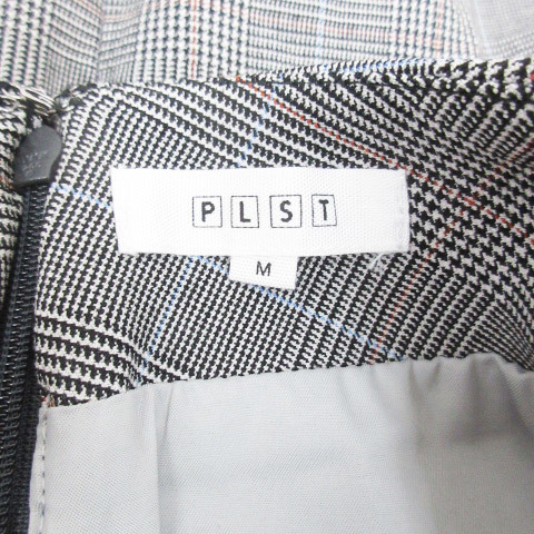プラステ PLST 台形スカート ひざ丈 グレンチェック柄 マルチカラー M 白 黒 ホワイト ブラック /FF52 レディース