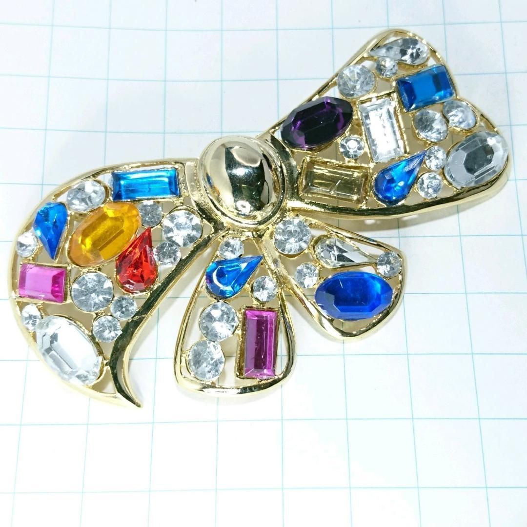 送料無料)ビンテージ☆キラキラリボン☆アンティークブローチ A15359