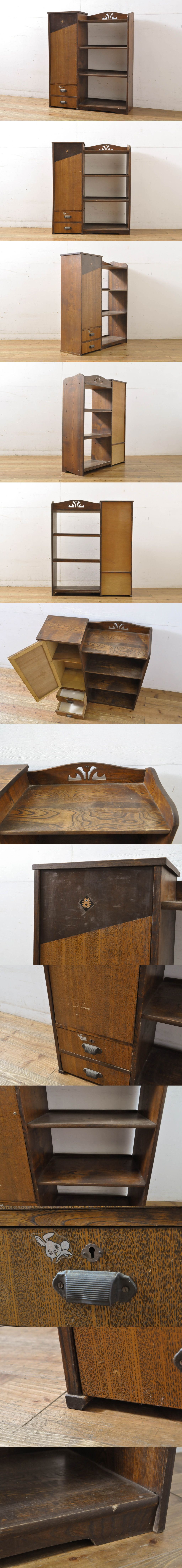 R-064144 和製アンティーク 大正ロマン 栓材 本棚(ブックケース、本箱、収納棚、戸棚、オープンラック、ブックシェルフ、飾り棚)