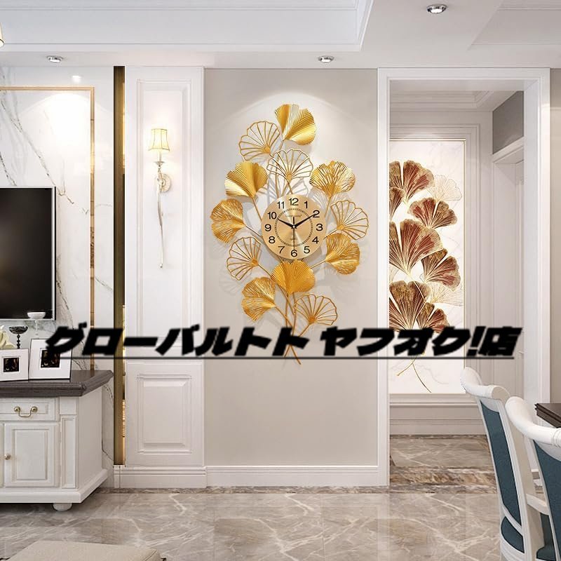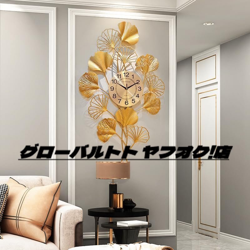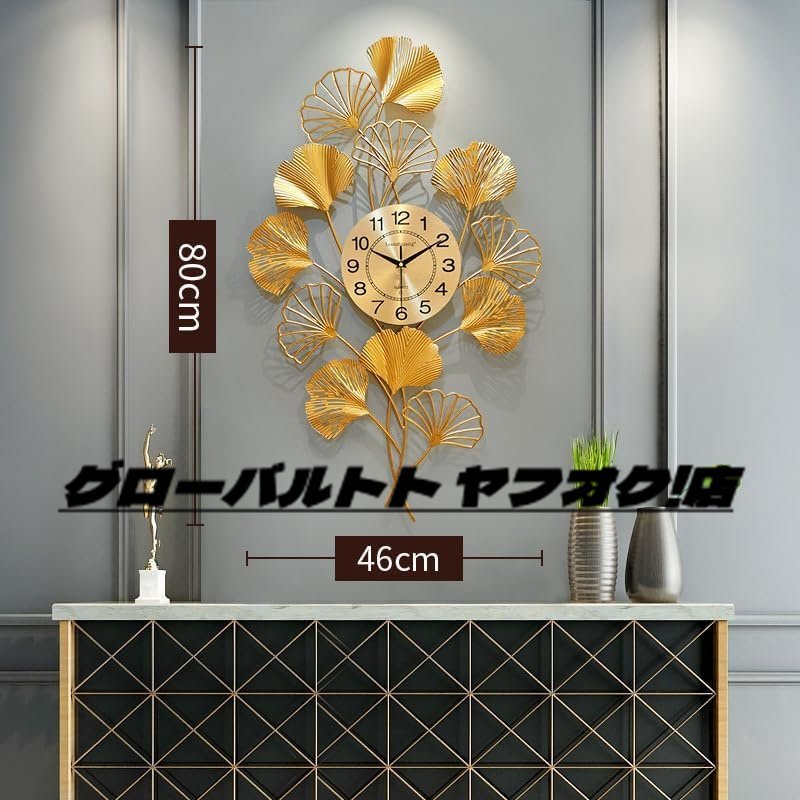 豪華 美品 銀杏 葉っぱ ゴールド デザイン 壁飾り 壁掛け時計 静音 電池式 家庭用 装飾