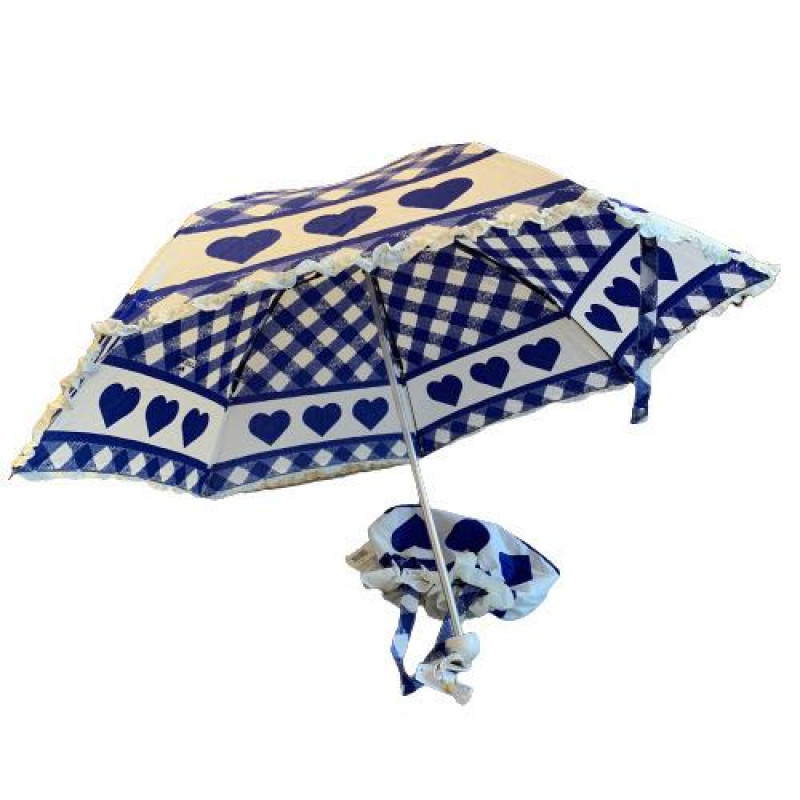 新品 ラデュレ 折りたたみ傘 ブルー ハート 晴雨兼用 フリル 紫外線対策