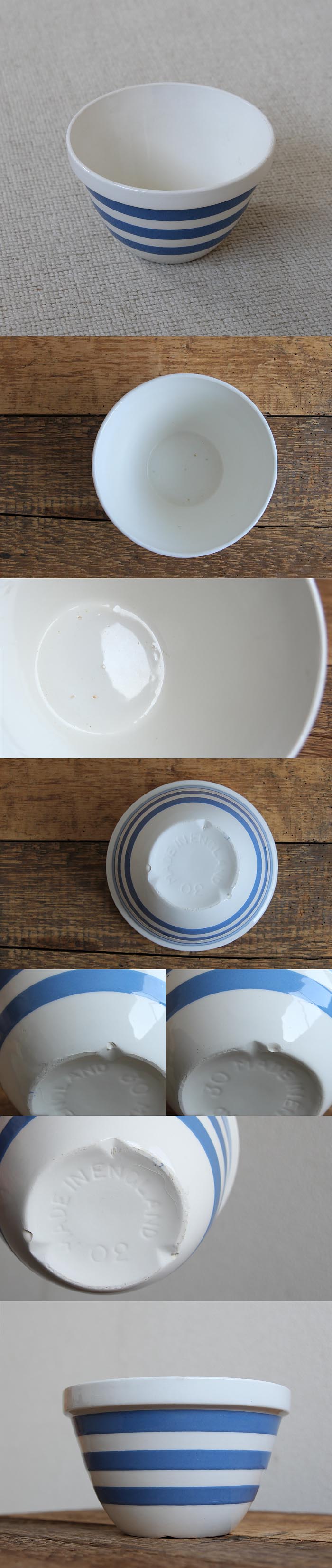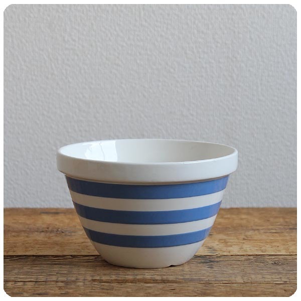 イギリス アンティーク ミキシングボウル コーニッシュウェア 陶器「ブルー&ホワイト ボーダー柄」V-830