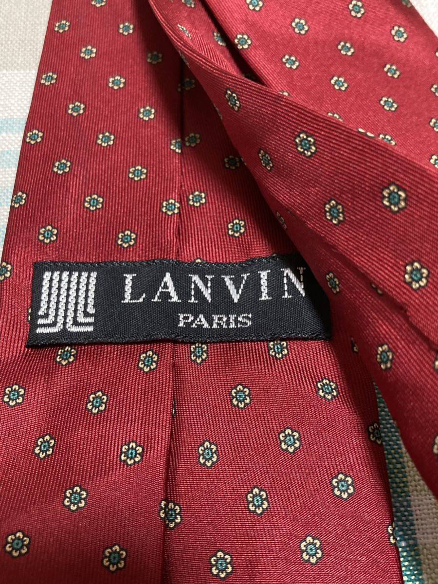 【LANVIN ランバン】ネクタイ イタリア製 小花総柄 レッド系 SILK ブランド USED オールド 古着