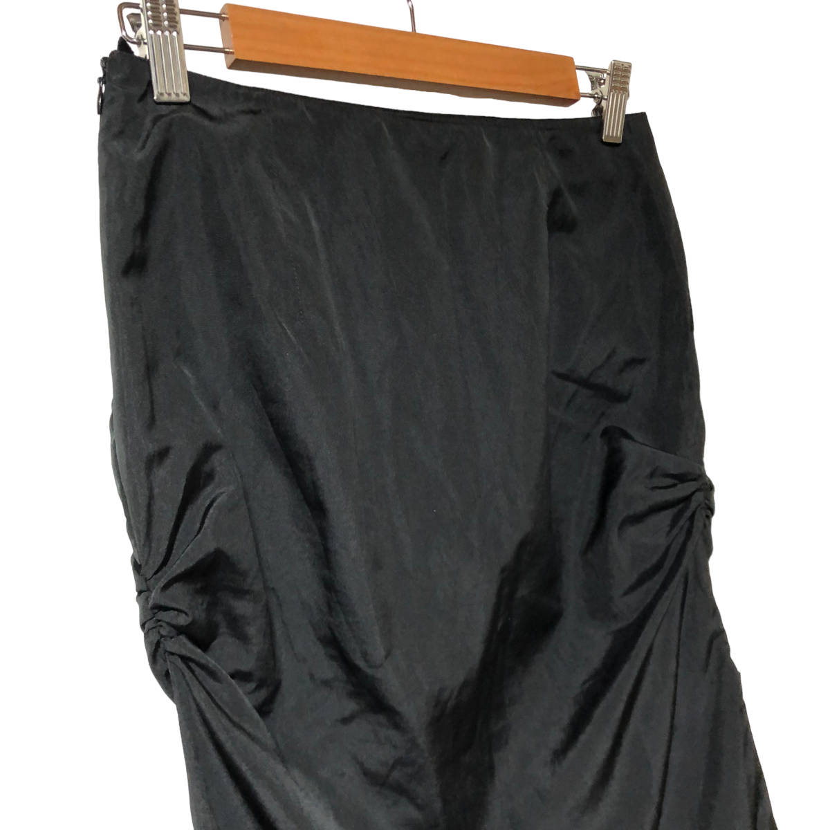 EMPORIO ARMANI エンポリオ アルマーニ シャーリング スカート シルク ポリエステル 40 黒 イタリア製 レディース A29