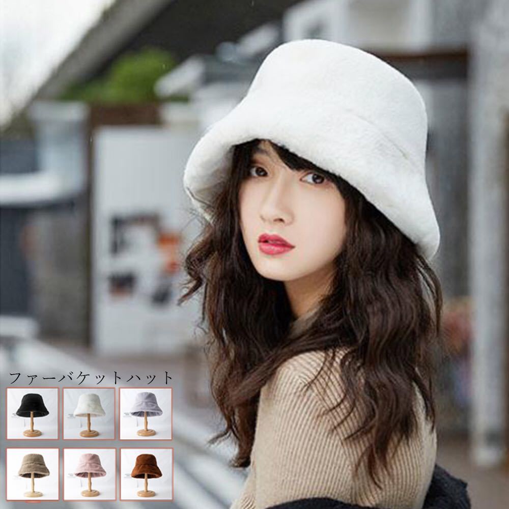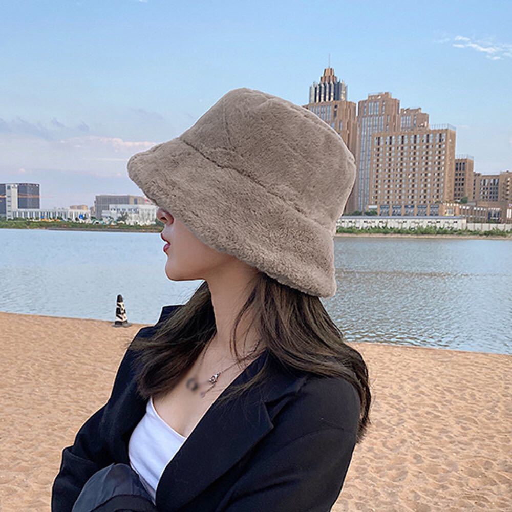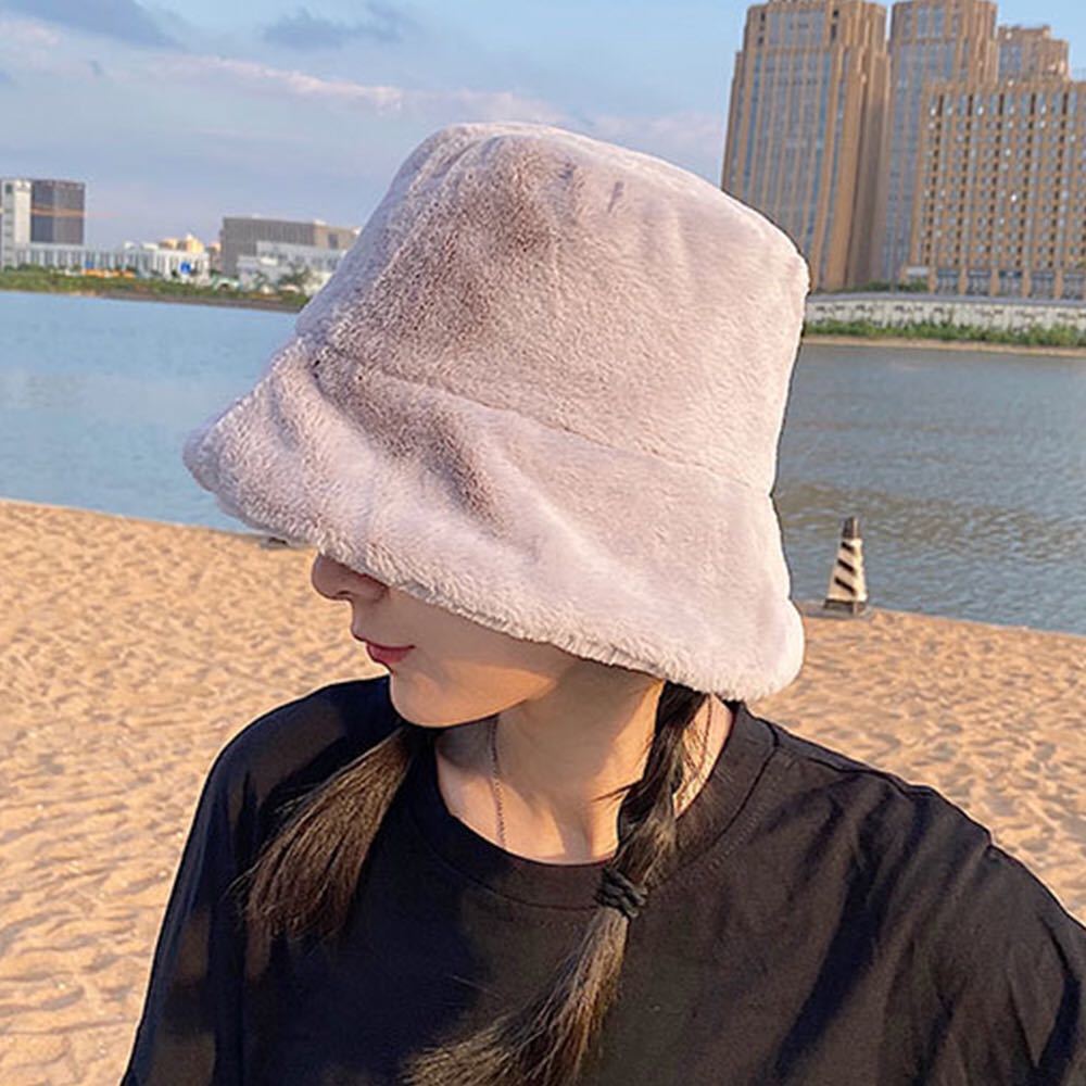 ふわふわもこもこの触り心地が良いフェイクファーバケットハットです