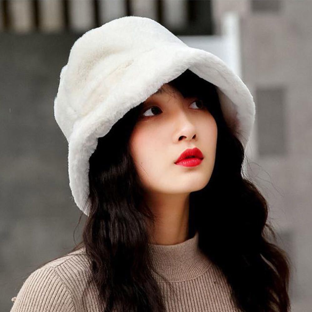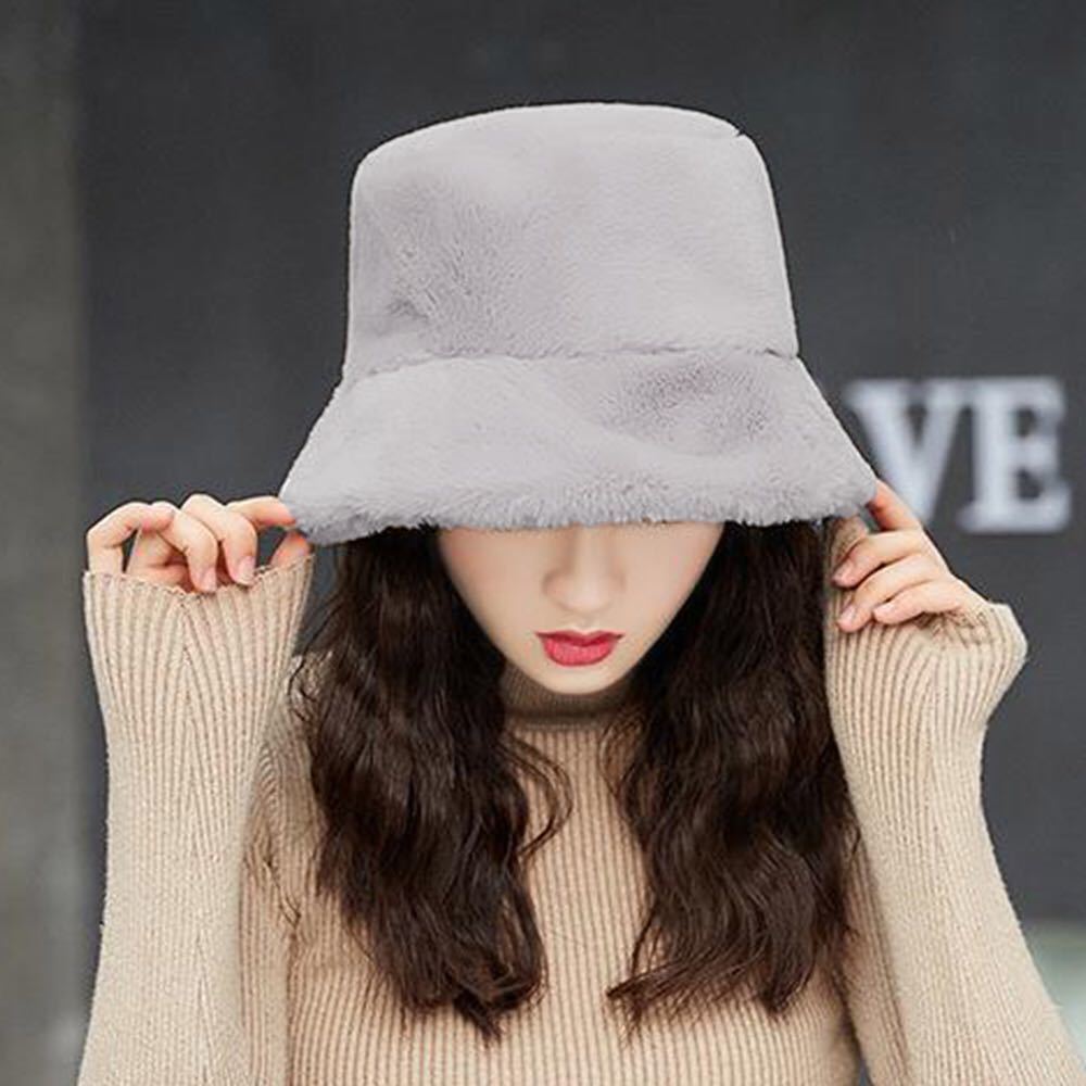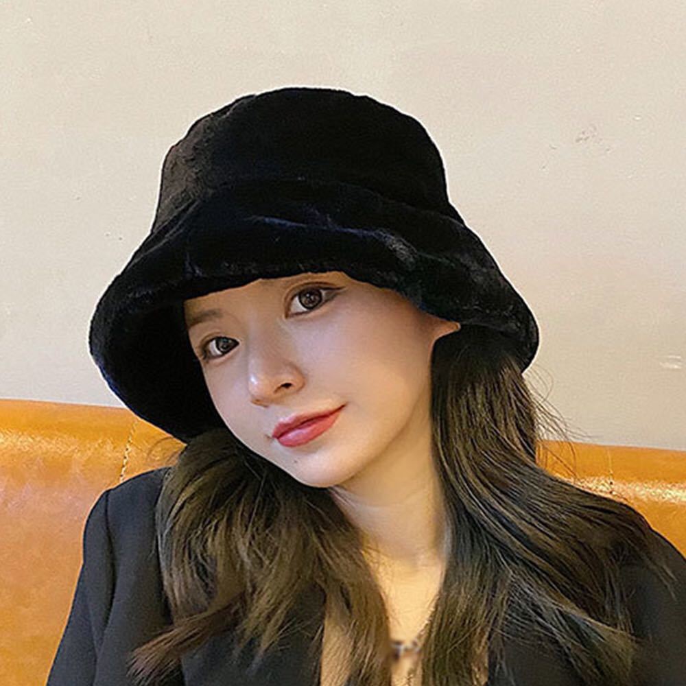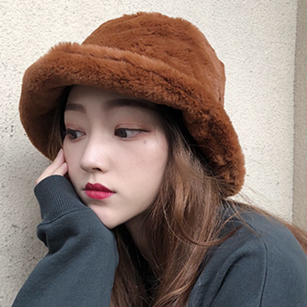 ふわふわもこもこの触り心地が良いフェイクファーバケットハットです