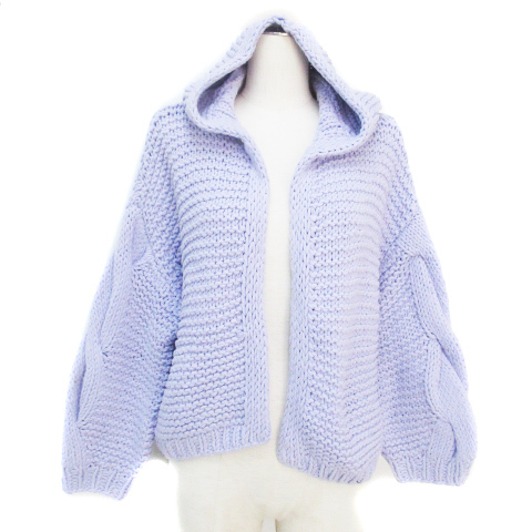 アパートバイローリーズ apart by lowrys ニットカーディガン フード付き ミドル丈 前開き 無地 F 紫 パープル /FF6 レディース