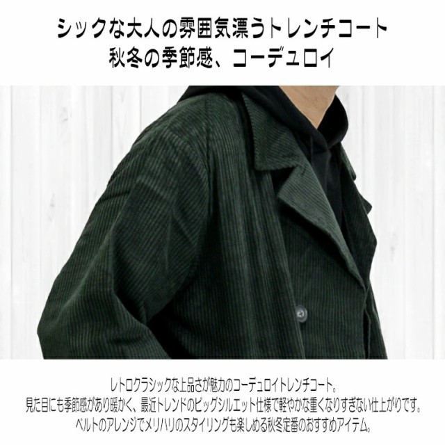 コーデュロイの暖かみのある素材が季節感あふれるオーバーサイズトレンチコート。