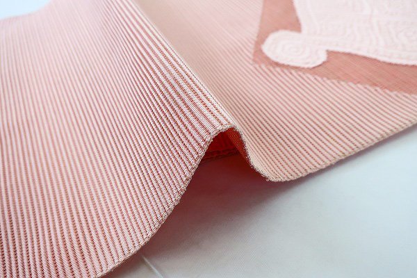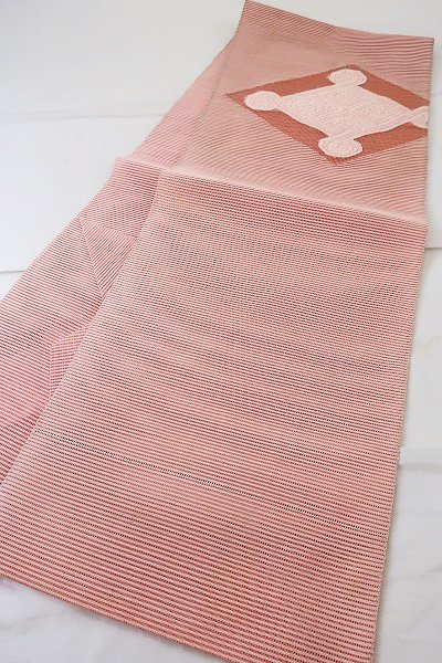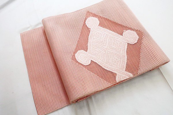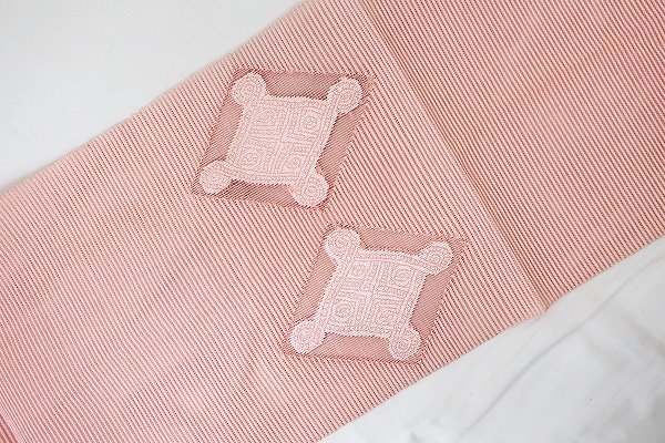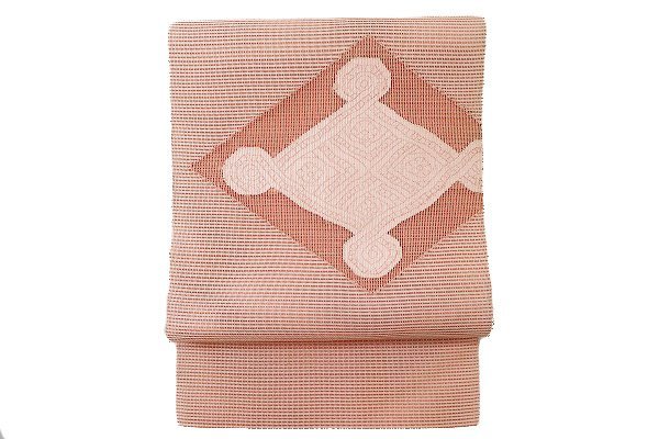 | 【着物フィ】名古屋帯 絽綴れ 夏帯 ピンク 菱形 お洒落 普段着 レトロ 正絹 仕立て上がり m-4958 |