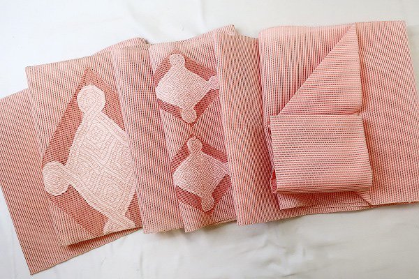 〔帯の色〕 ややくすんだピンク色地 〔素材〕 正絹 |