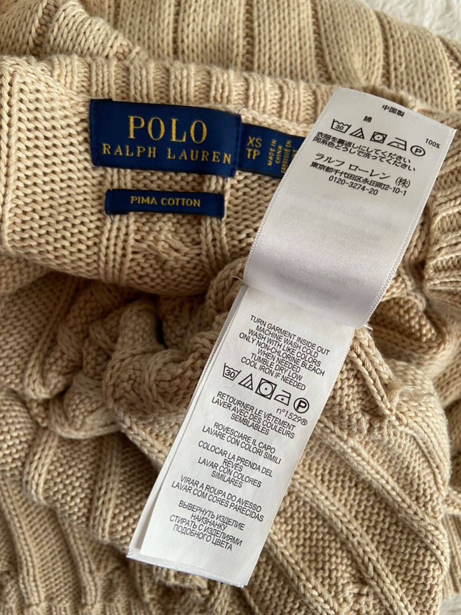 POLO RALPH LAUREN sizeXS ピマコットンセーター アラン編み Vネック ベージュ ポロ ラルフローレン PIMA COTTON