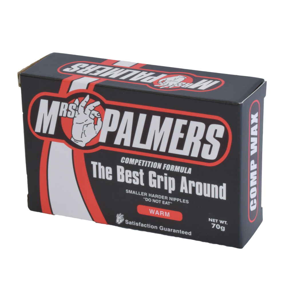 ※こちらはCOMP WARM 70gです。適合水温:22℃以上ベーシックモデルよりもグリップ性を上げたハイパフォーマンスワックス【Mrs Palmers(ミセスパーマーズ)】1988年創立、オーストラリアを代表するサーフワックスブランド。オリジナルWAX「ULTRA STICKY」は、BASE・COLD・ COOL・WARM・TROPICALと水温に合わせて配合されたベーシックワックスに加え、さらなるパフォーマンスを求める方向けのCOMP WAX(COMPETITION FORMULA)、また、SOFTBOARD専用WAXをラインナップしています。