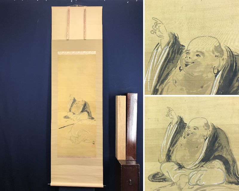 真作/野田九浦/布袋図/人物図/ホテイ図//掛軸☆宝船☆AD-684