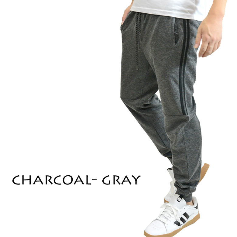【閉店セール】スムースポンチ素材 2本サイドラインストレッチジョガーパンツ 46461 メンズ 新品 杢チャコールLL