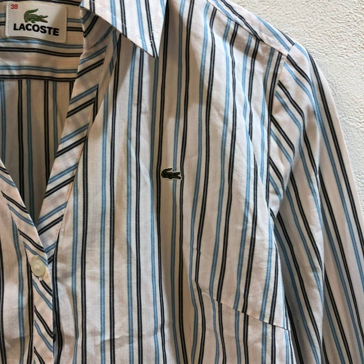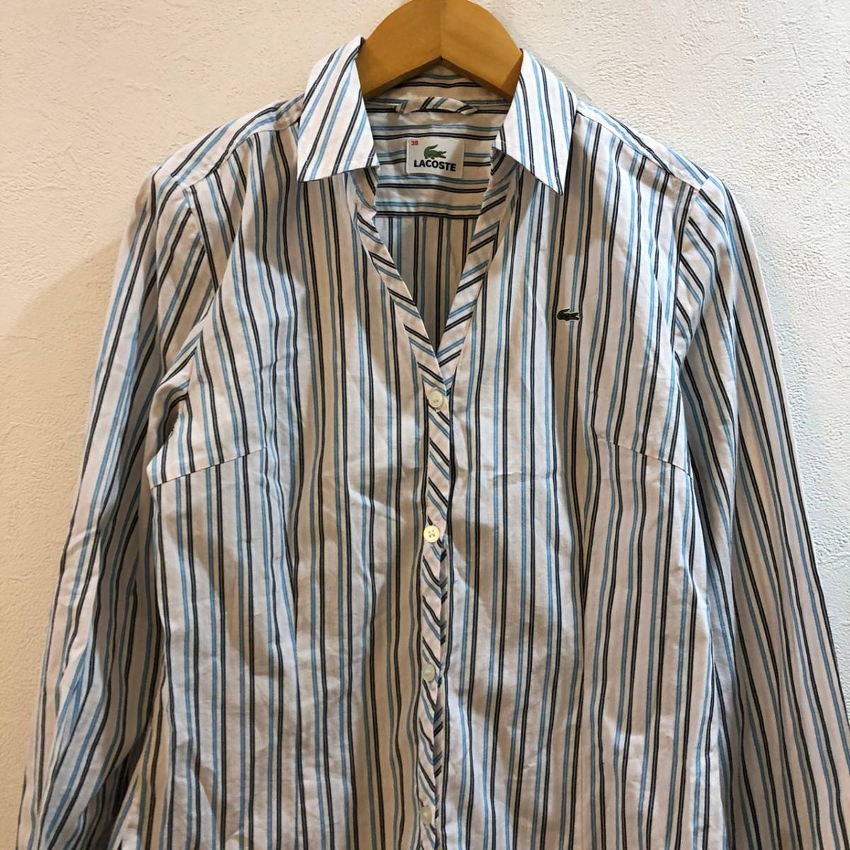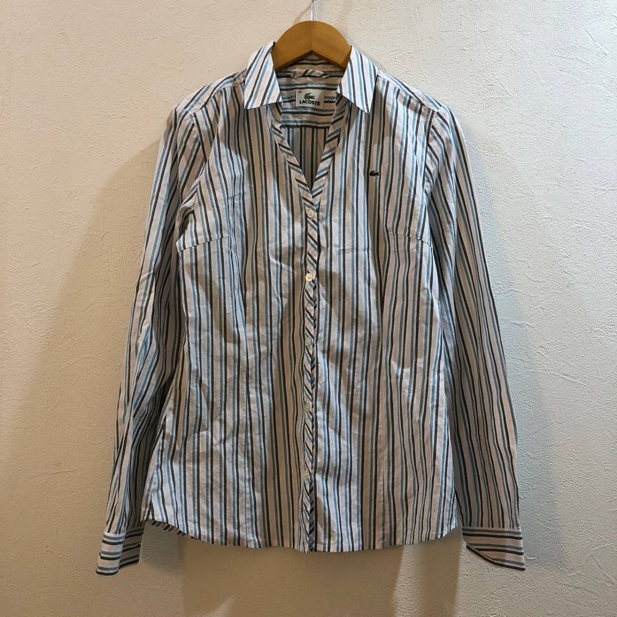 商品: LACOSTE/ラコステ 長袖ストライプ柄シャツ ホワイト ブルー レディース 38