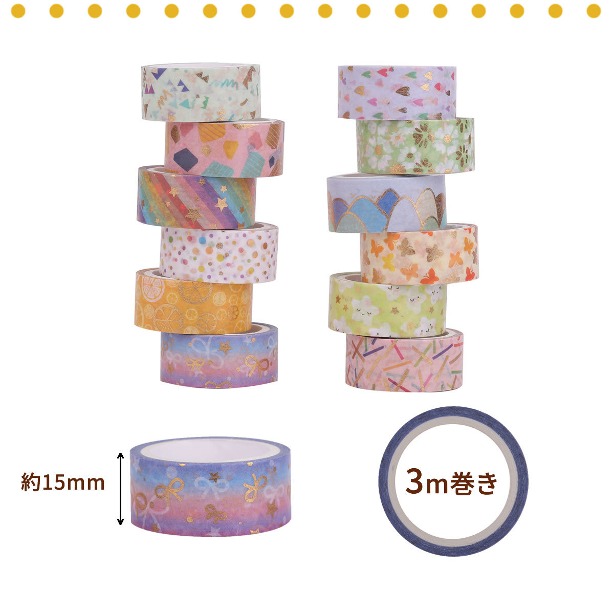 ●テープサイズ(約):幅15mm×3m 12巻