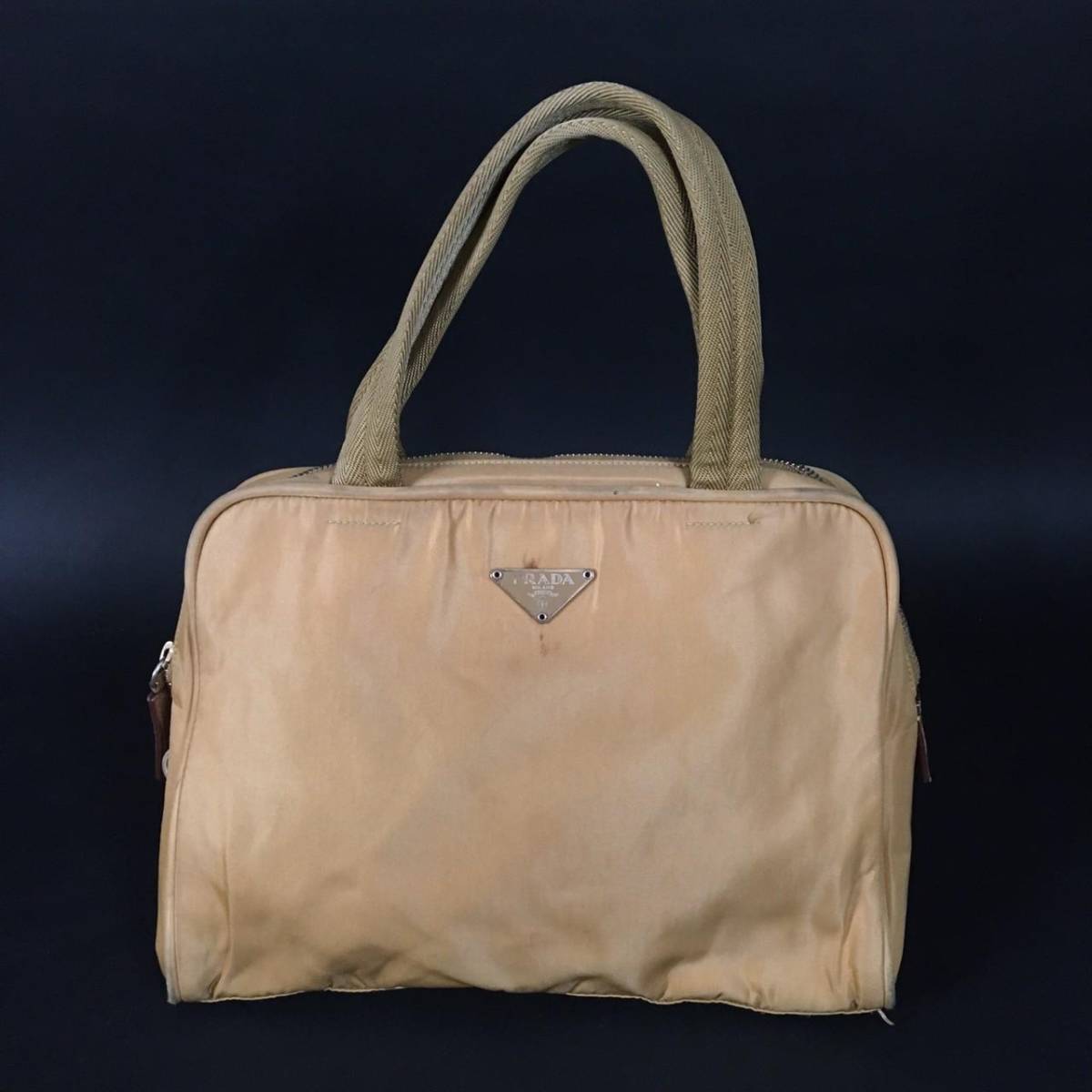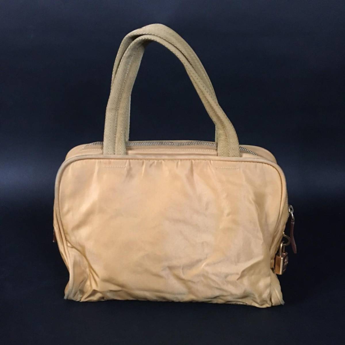ER1006-2-3 プラダ PRADA ナイロン ハンドバッグ トートバッグ ベージュ 三角ロゴ ダイヤルキー付 80サイズ