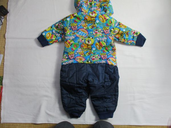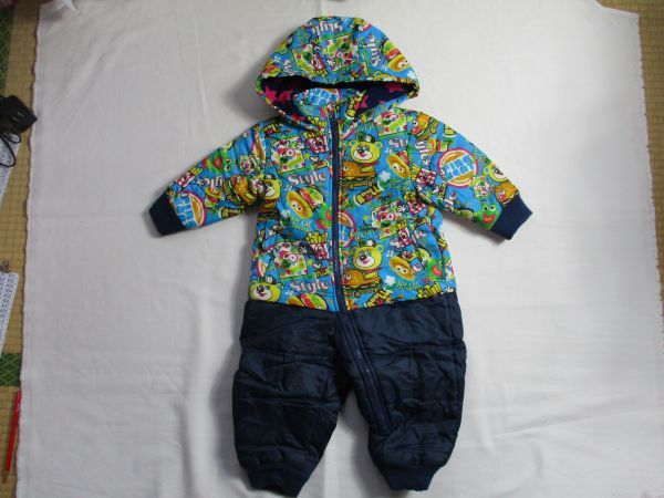 BF374【FINEBEAT・ ファインビート】アニマル模様 中綿入り 裏地フリース ジャンプスーツ 男女児 水 90 | ||